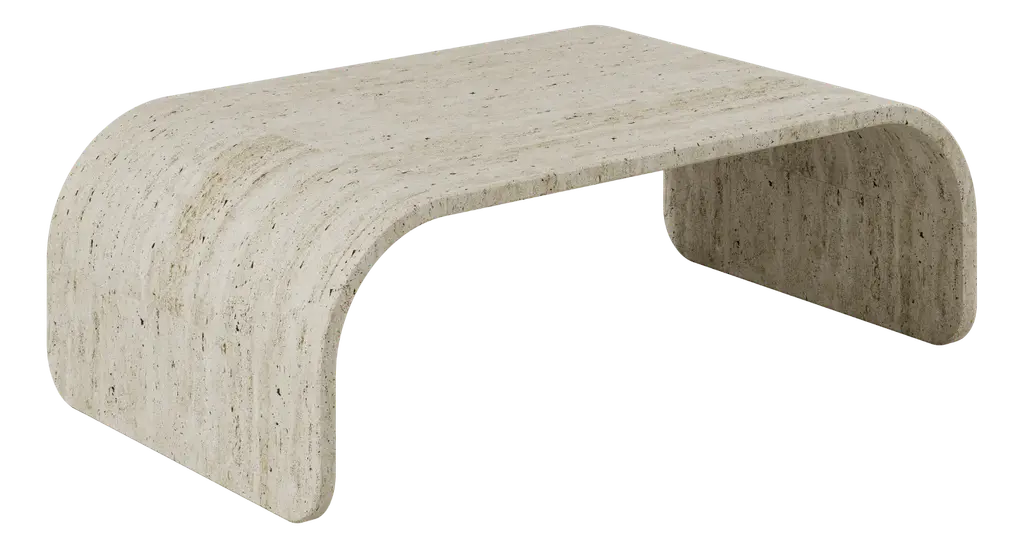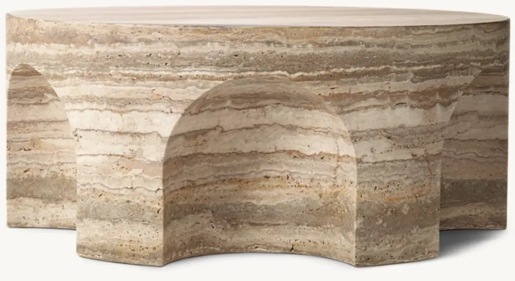 An ode to the city of Rome, our collection by French-Italian designer and architect Joris Poggioli is informed by the architectural rigor of 1930s Rationalism. Rendered in solid stone, the monolithic form is energized by a rhythmic sequence of concave arches that recall the arcades of the Colosseum. The timeless geometric silhouette highlights the inherent beauty of the stone's coloration and veining.