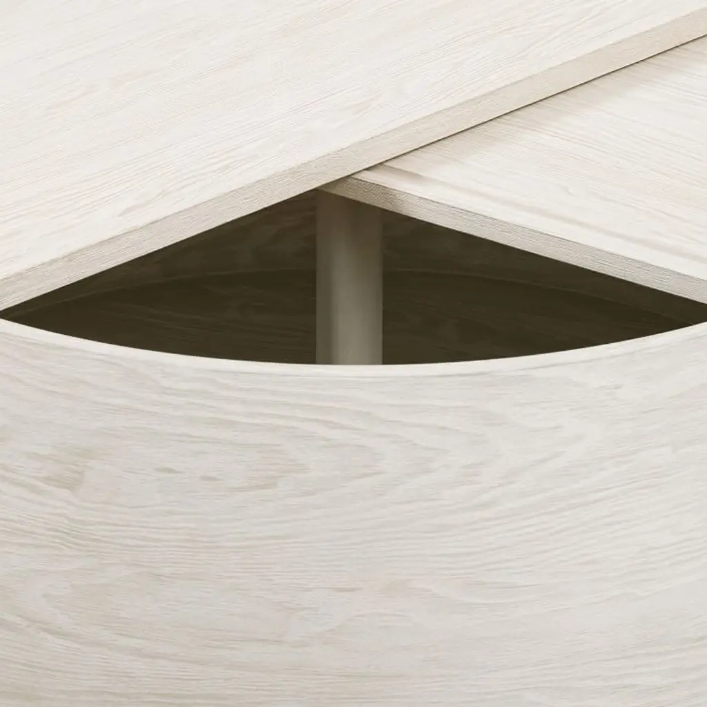 Round shape artfully contrasts with clean lines. Top opens to reveal discrete storage space. Made of kiln-dried, sustainably sourced wood. Contract Grade, so you know it's built to last.