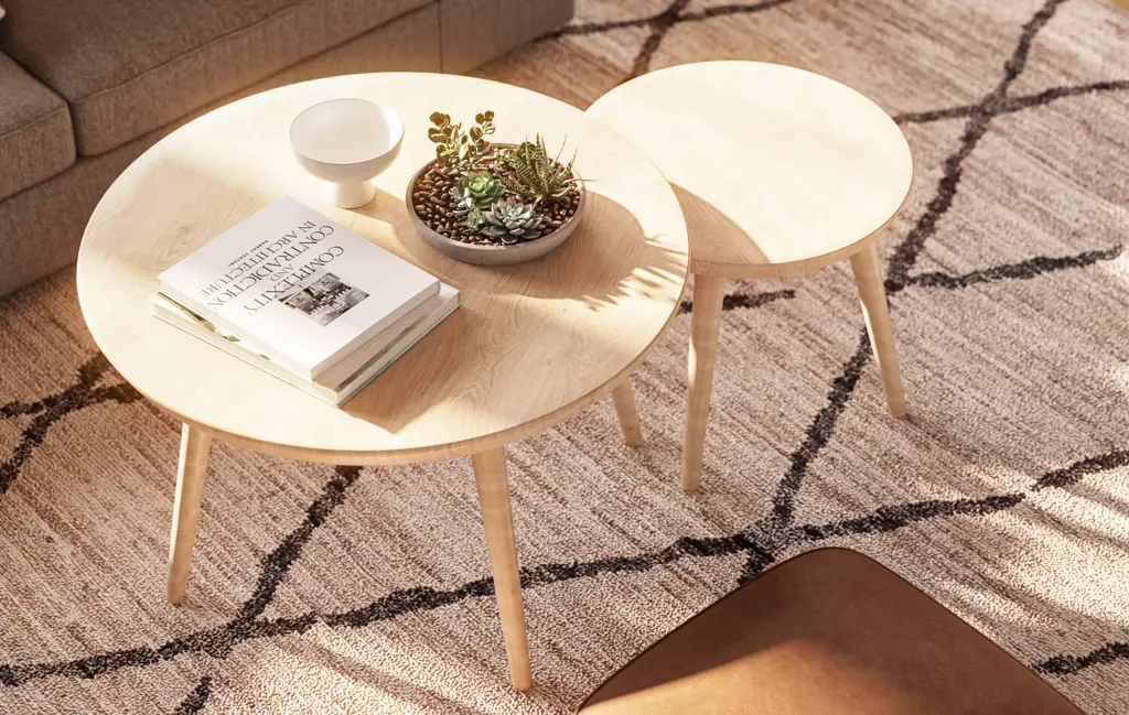 Inspired by flowing points of intersection on the streets we walk everyday, Voya Coffee Table's angled, hand-carved legs narrow to a delicate width. Enjoy with a smaller, nesting Voya Side Table at its side, or place on its own for an elegant place to plop your drinks and coffee table books. Expertly crafted by hand using your choice of hard White Oak, Maple, American Walnut, or black-stained white oak.