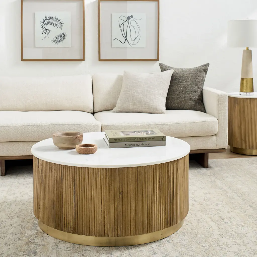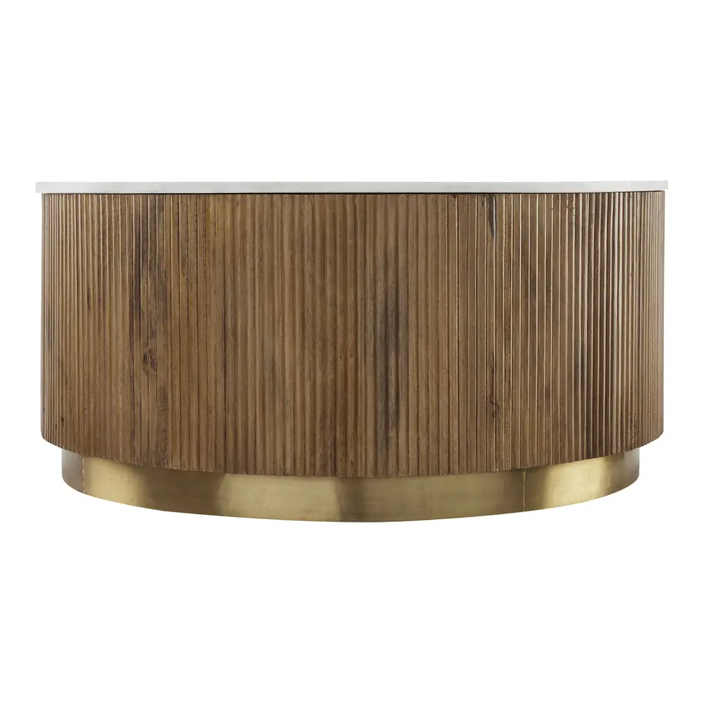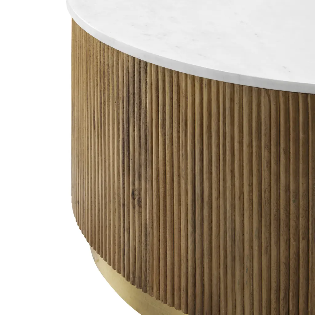 Walham Round Mango Wood And Marble Fluted Coffee Table