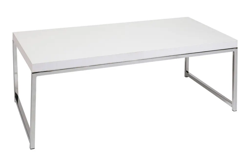 Simple yet sleek, the Wall Street Coffee Table exudes an air of distinction and prestige that will enhance any interior setting. An undeniably, attractive statement piece, this table is durably built with reinforced beam construction and a thick tabletop that features a flush, wood-to-metal edge for increased visual appeal. Outfitted with reflective, chrome legs and a wood veneer top that is available in your choice of color, this furnishing instantly illuminates any space while still retaining its refined demeanor.