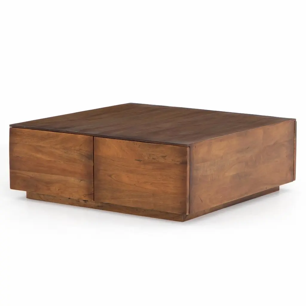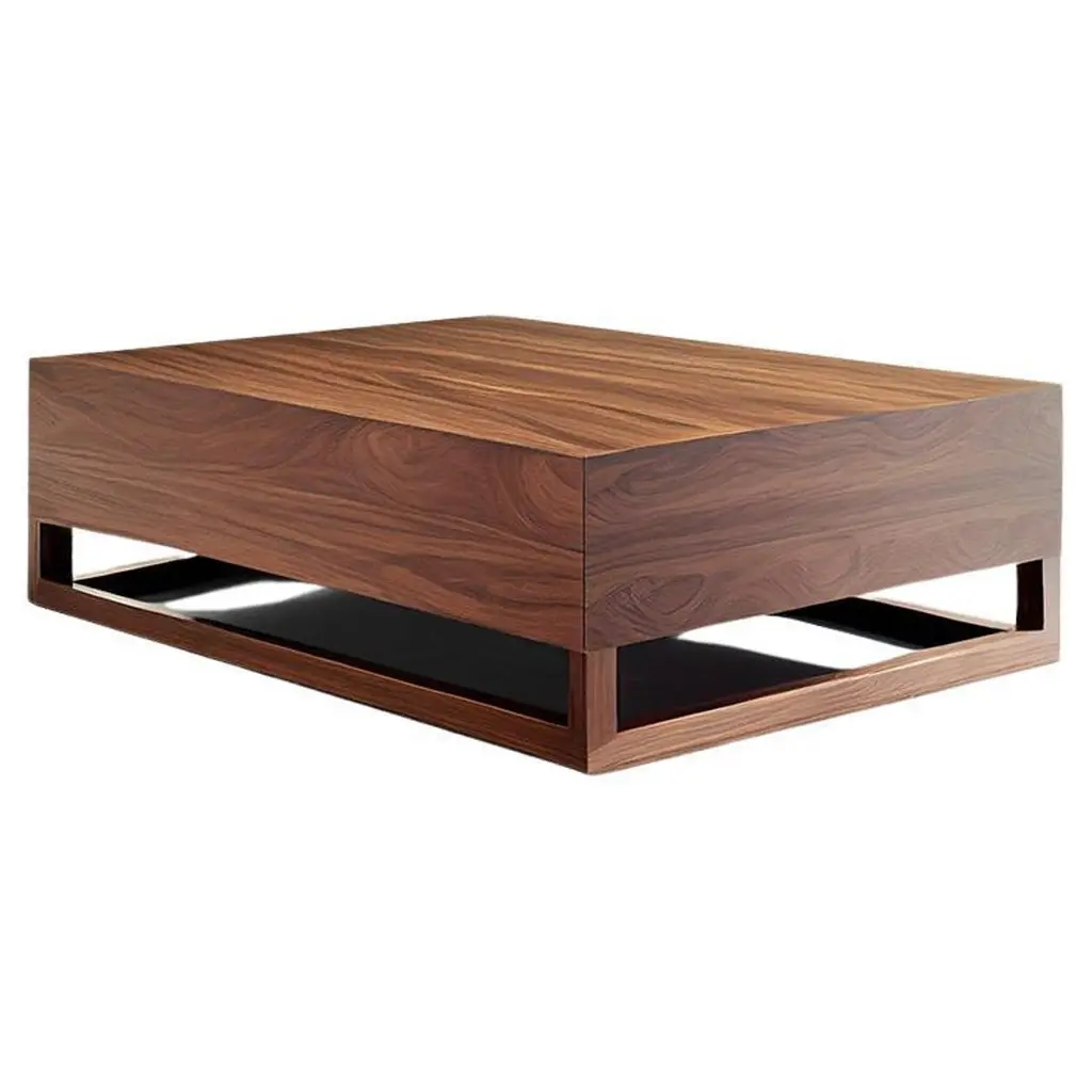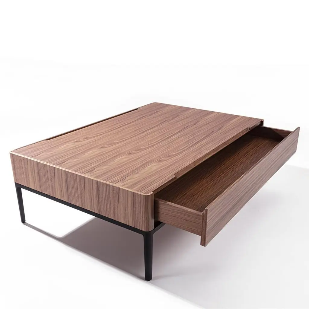 Coffee table walnut case with black lacquered aluminium base and with solid walnut top with 2 drawers.