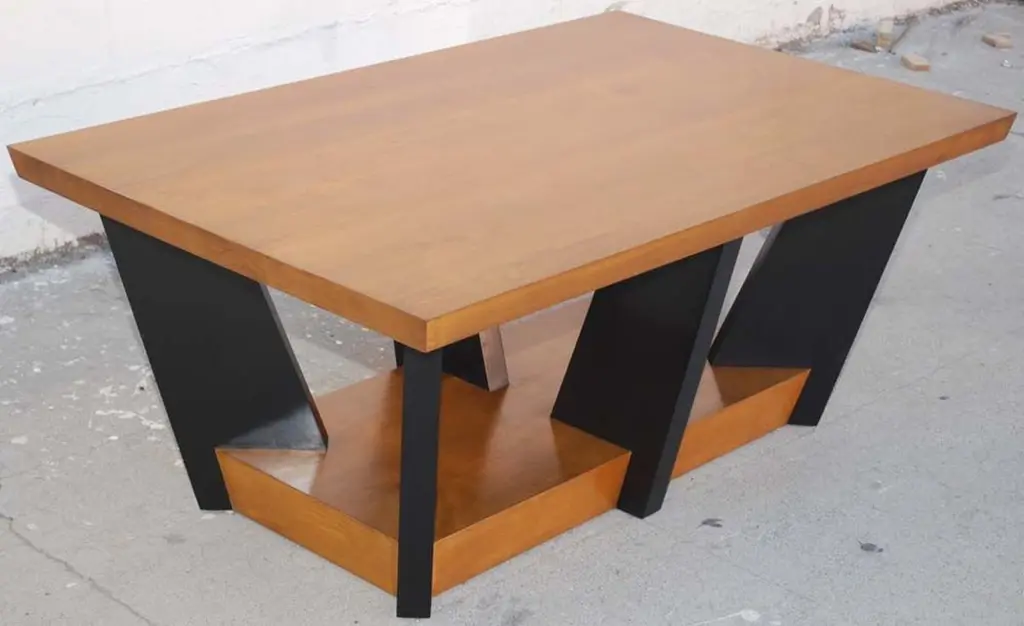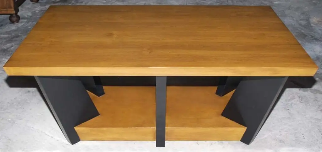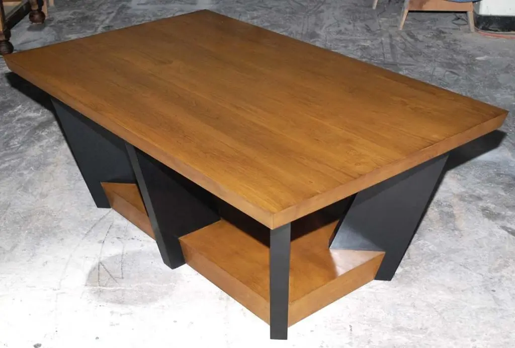 This coffee table is made in solid walnut or alder with ebonized legs. This modern design is inspired by Nordic Biedermeier. The base is 4 inches thick and the top is close to 2 inches.Because each table is bench-made in our own Los Angeles workshop you can influence all aspects of design, including size, wood specie and finish. We use only traditional carpentry techniques, no nails or metal fasteners of any kind. Just mortise and tenon construction reinforced with hand-cut wooden dowels.
