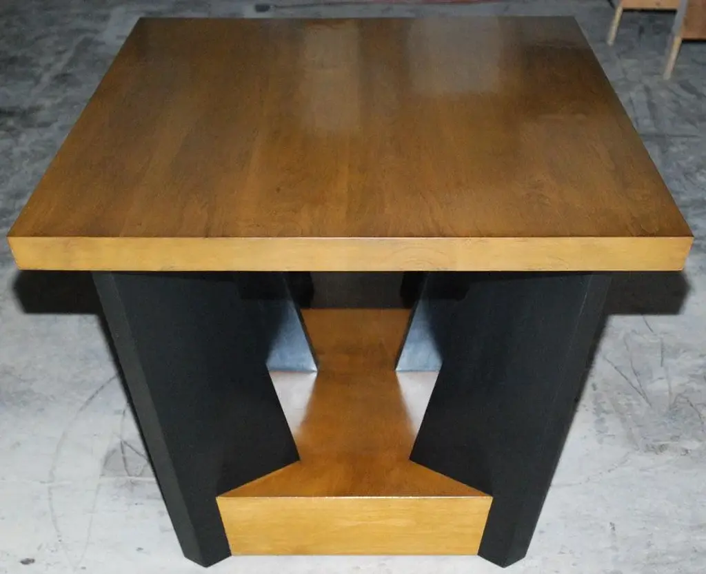 This coffee table is made in solid walnut or alder with ebonized legs. This modern design is inspired by Nordic Biedermeier. The base is 4 inches thick and the top is close to 2 inches. Because each table is bench-made in our own Los Angeles workshop you can influence all aspects of design, including size, wood specie and finish. We use only traditional carpentry techniques, no nails or metal fasteners of any kind. Just mortise and tenon construction reinforced with hand-cut wooden dowels.