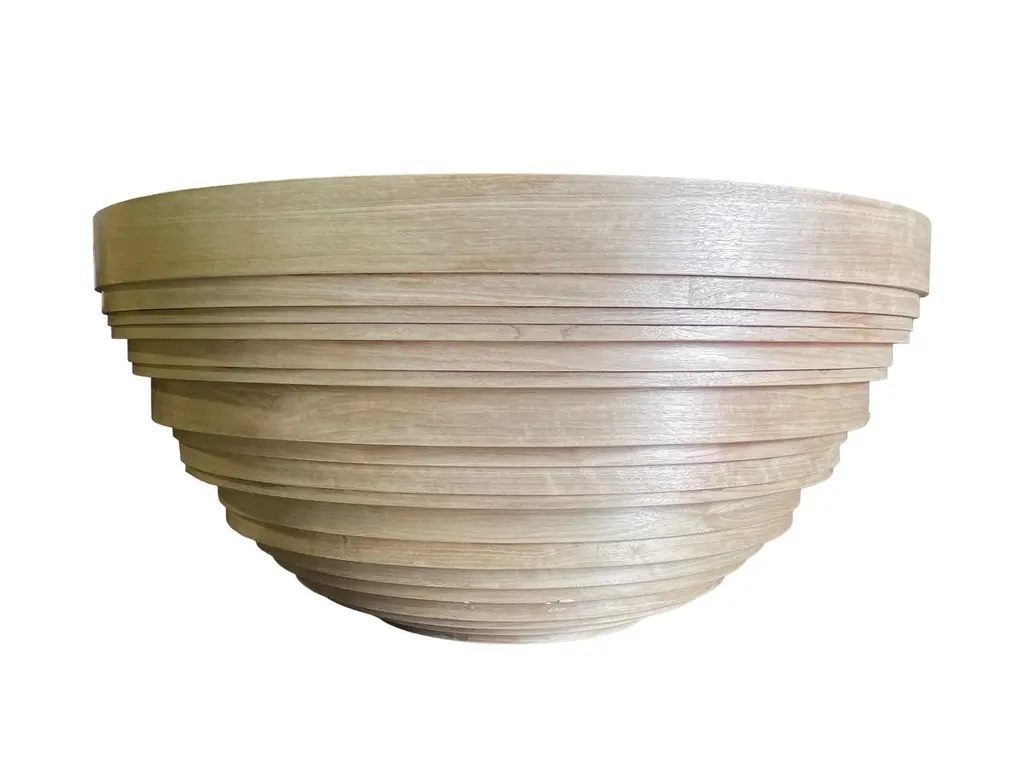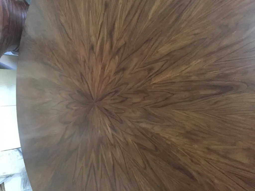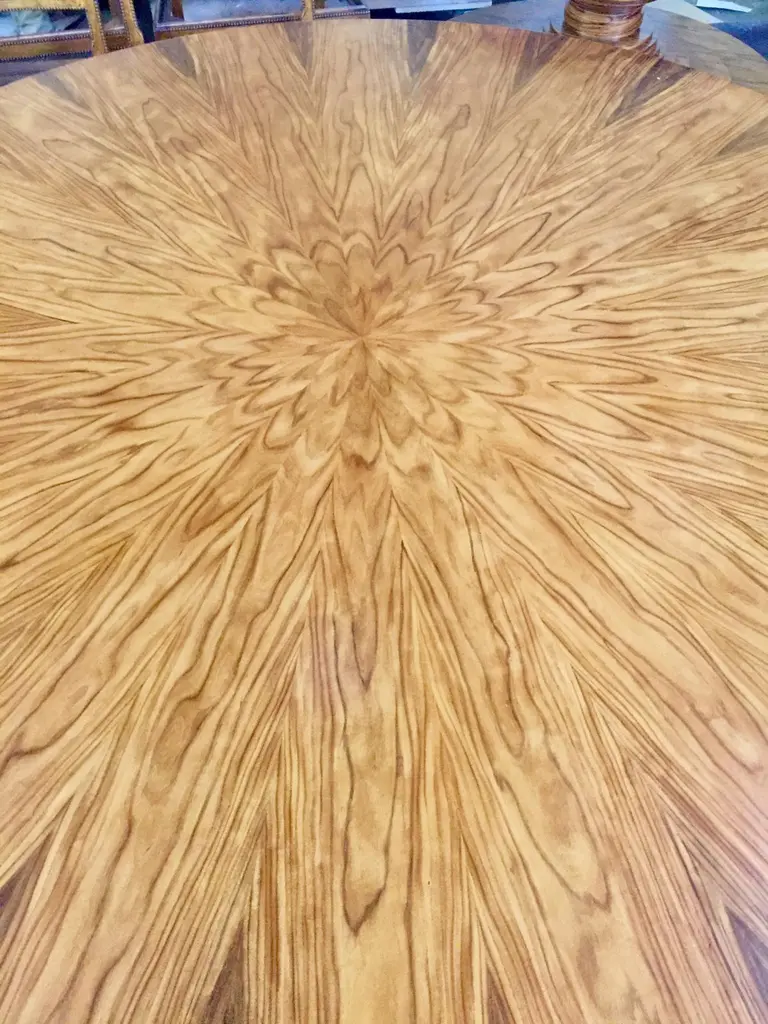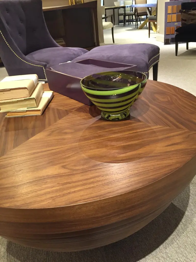 The iconic tribal Jaya drum table is handcrafted with traditional joinery, fabricated with multiple stacked discs in various sizes, toped with a book-matched sunburst, the Drum table is finished with a lustrous polish. Custom sizes and finishes available.