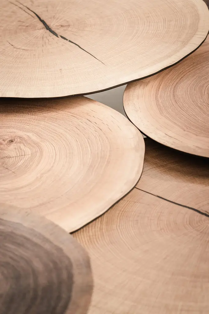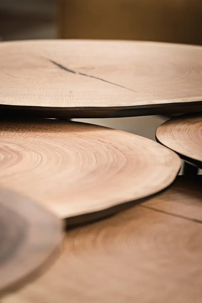 Walnut Empreinte Coffee Table by RALPH MDimensions: W 55 x D 55 x H 36 cm. Materials: Solid beech, Walnut. Details:Table Top: Every table top in solid wood is unique in veining and dimensions. Top side «end grain» veneer 9/10. Bottom side veneer on MDF thickness 22 mm. «Aeroplane wing» profile.Base Frame: Solid beech.Ralph M:In its French workshop, Ralph M. creates and crafts personalisable top-quality sofas and armchairs. A bold challenge. And one achieved successfully for more than 30 years. The Ralph M. team fulfils the essential challenge of the Made in France label: guaranteed quality through the ability to combine the best materials with expertise and open-minded flexibility.For more than 30 years, Ralph M. has used its expertise and attention to detail in creating pieces that draw on the latest trends in furniture. But they also enjoy exercising their own bold originality. In fact, they like it so much that they always want to go further in asserting their unique aesthetic.The new RALPH M. range embodies their desire to take creative risks and enhance the standard pieces of the furniture repertoire by revisiting them.They believe that design is as valid an artistic expression as literature, painting and music. The RALPH M. brand makes everything possible. It is in many ways our laboratory in which luxury, comfort and good design come together to create timeless pieces with their own distinct identity.