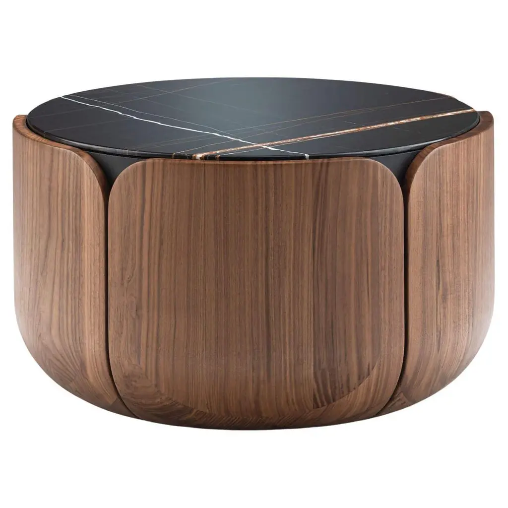 Walnut Natur Sahara Noir Bloom Coffee Table L by Milla & MilliSigned by Maša Vukmanović, Jelena Lukač Kirš, Jakov ŠrajerDimensions: W 100 x D 100 x H 30 cm Materials: Walnut Natur, Black Metal, Marble Sahara Noir. Bloom Coffee Table:Flowers are one of nature's most delicate things of wonder. So enchanting, yet so fragile; inspiring, but short lived. Bloom coffee table manages to immortalize that beauty, to encapsulate the magic of a living flower in a fascinating creation of solid wood and marble. It is a single flower that transforms your space. Forever.Milla&Milli started out as a brainchild of two artlovers; a shared dream of two souls in love with design, wood and each other. And to this day, that love and passion is still clearly embodied in every masterpiece we create.Meet Ksenija and Ivić Pašalić, two halves of one Milla&Milli heart and the driving force behind everything you have seen so far.A CELEBRATION of design:"We truly live and breathe design. We love it, respect it, encourage it, promote it. We put it at the forefront of everything we create and with the help of meticulous craftmanship, we build our story through it.Meet our leading designers, Jelena Lukač Kirš and Jakov Šrajer, and the company's art director, Maša Vukmanović."AN ODE to Mother Nature:"We consider ourselves as doers first, talkers second. So, our ode isn't one of words, but of heartfelt and decisive action. And one you are invited to join. Our pledge is to create new life, to plant a new tree for every piece of furniture you buy. Thus, the park forest growing around our facilities stands as a living and breathing reminder of our shared mission — to protect and respect our Mother Nature."
