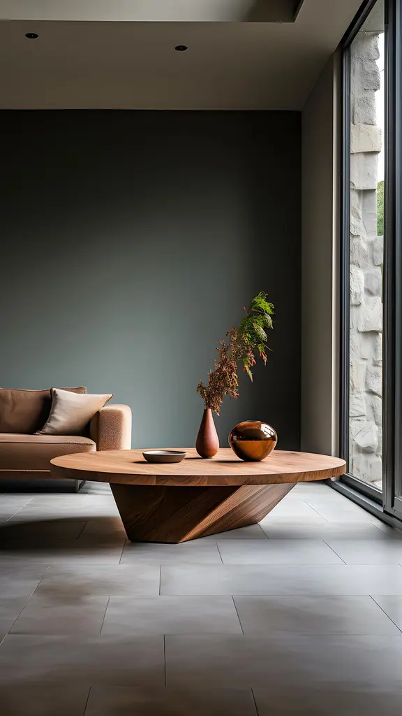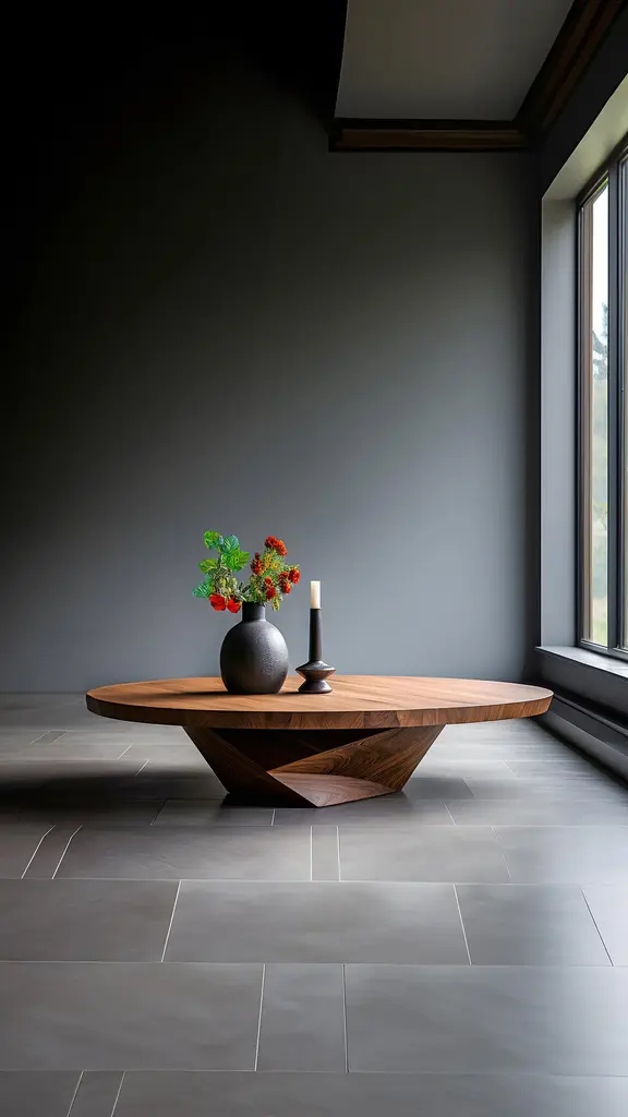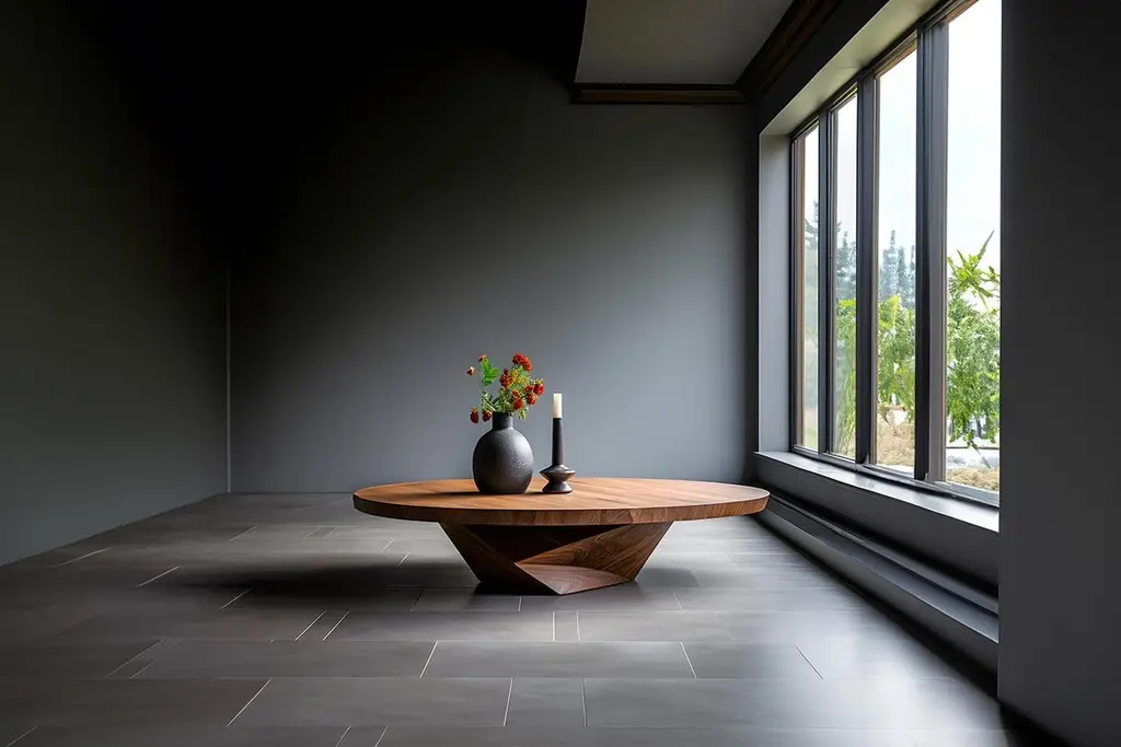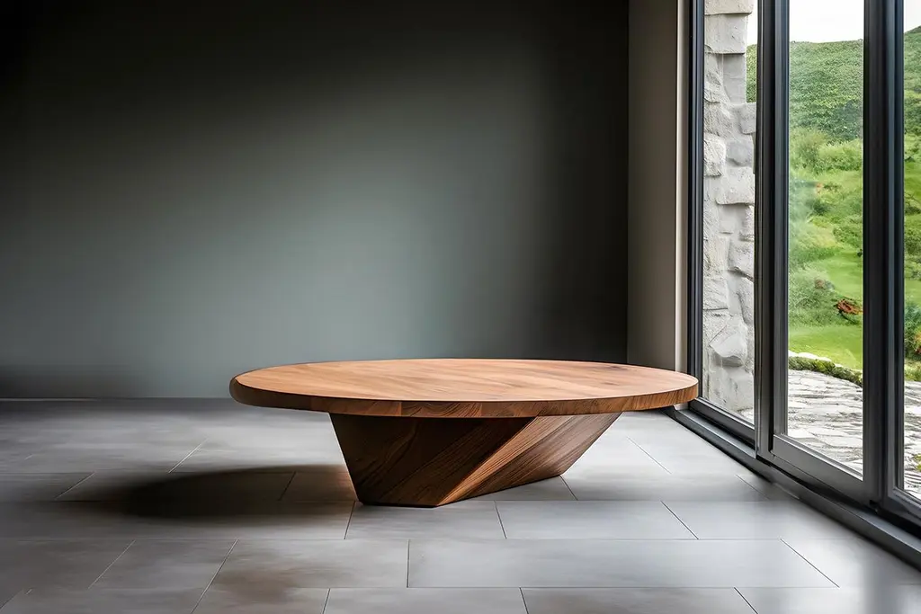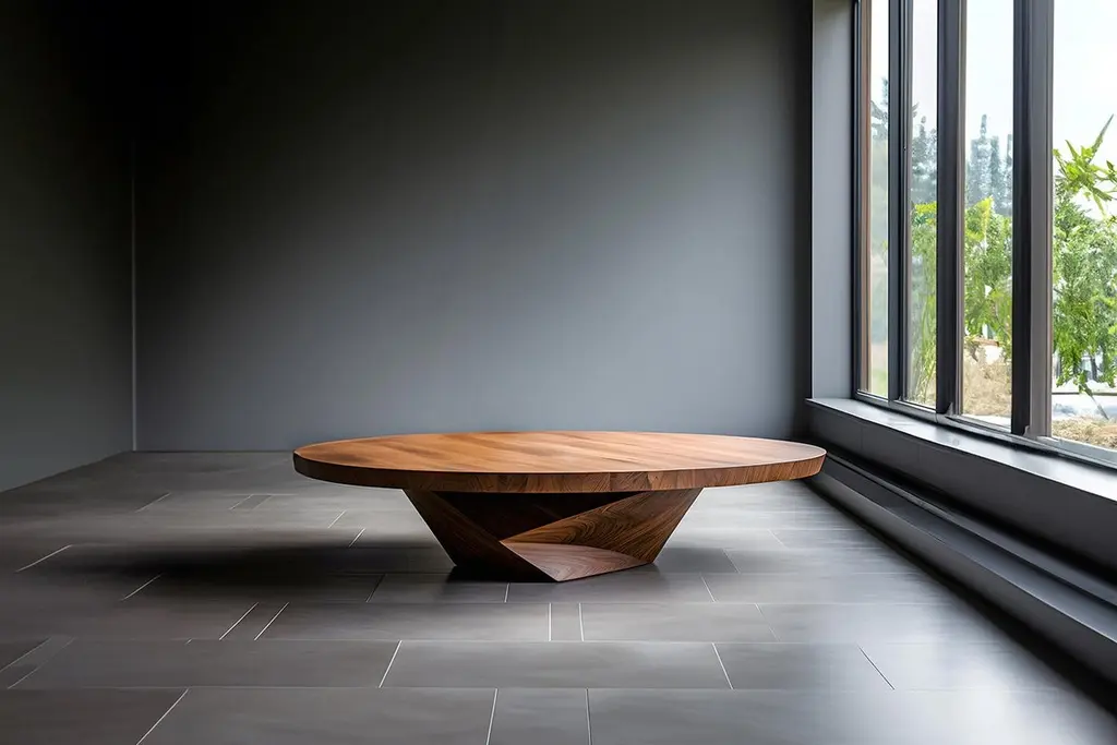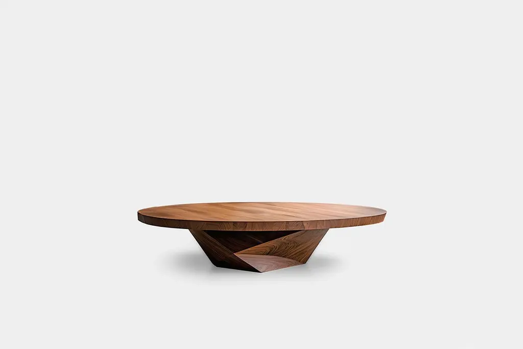 Walnut Opulence Solace 28: Coffee Table With Geometric Base And Straight Lines