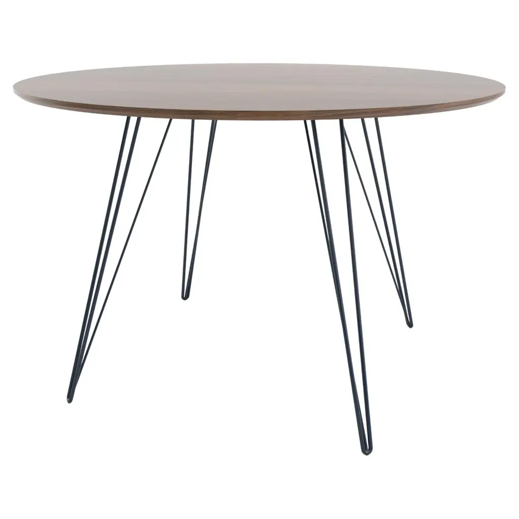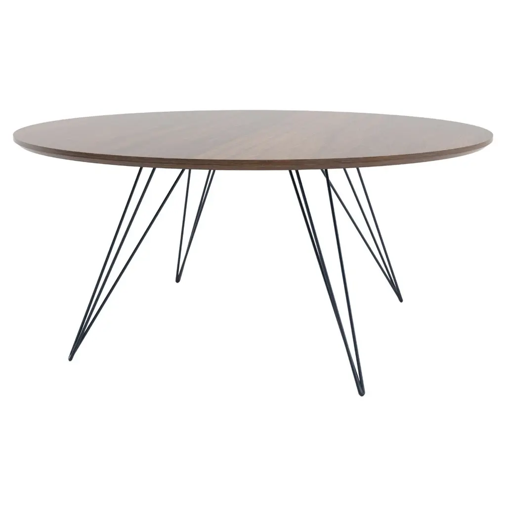 Walnut Williams Coffee Table Navy Hairpin Legs, Circle Top