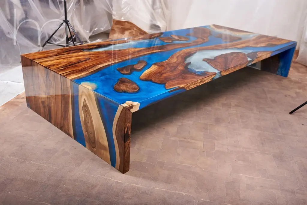 Walnut Wood Large Coffee Table Modern Contemporary Epoxy Resin Coffee Tables