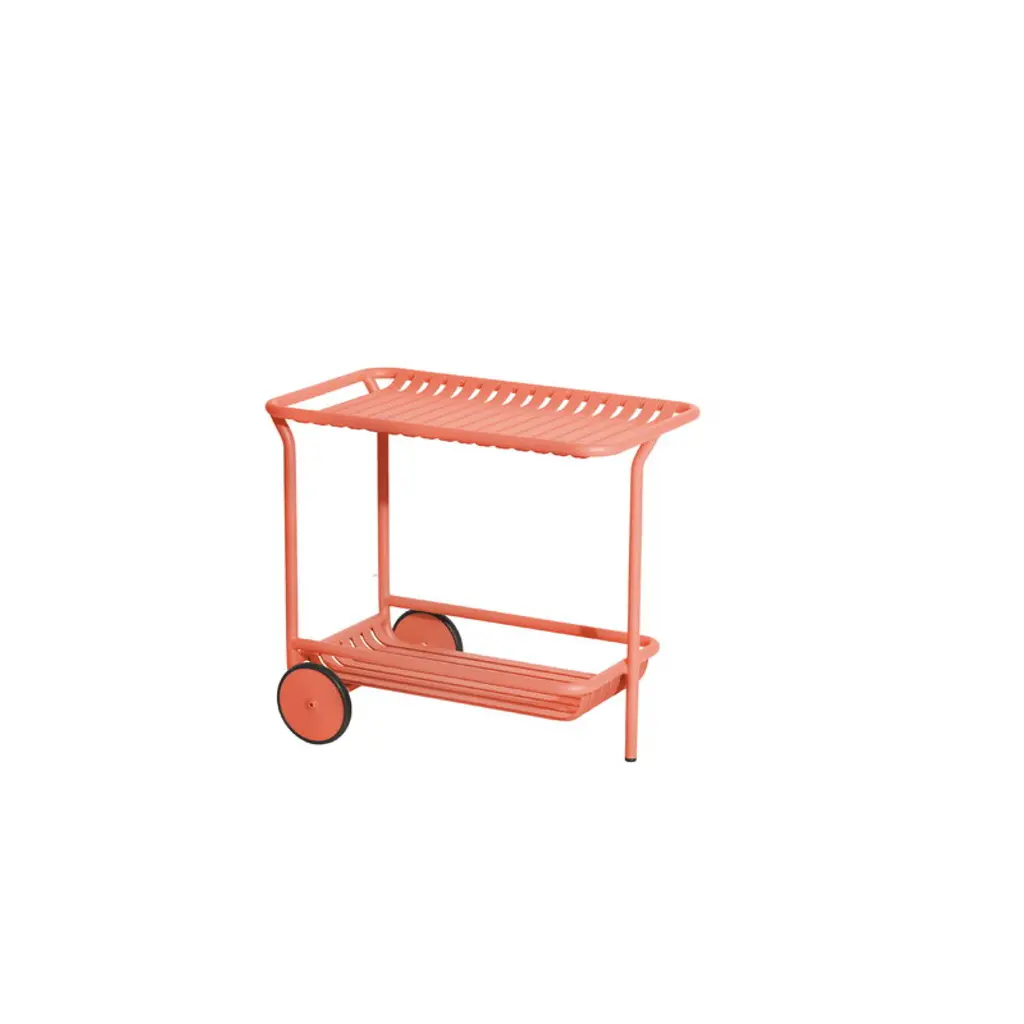 The Week-end trolley is part of Petite Friture's collection of aluminum outdoor furniture. The clean-lined outdoor serving trolley invites sassy and sophisticated cocktail moments to your garden, terrace or balcony. The multi-purpose trolley also works perfectly as a side or coffee table. Created by the design duo BrichetZiegler, Petite Friture’s Week-end outdoor furniture combines different geometrical shapes with functional, contemporary design. The aluminum structure makes the pieces lightweight and hardwearing at the same time, and the epoxy-coated matt surface can easily stand any weather. The Week-end range consists of chairs, benches and tables in many colors and sizes, and is thus suitable for large gardens and small balconies alike. Thanks to the sleek design, the pieces can also be used indoors.