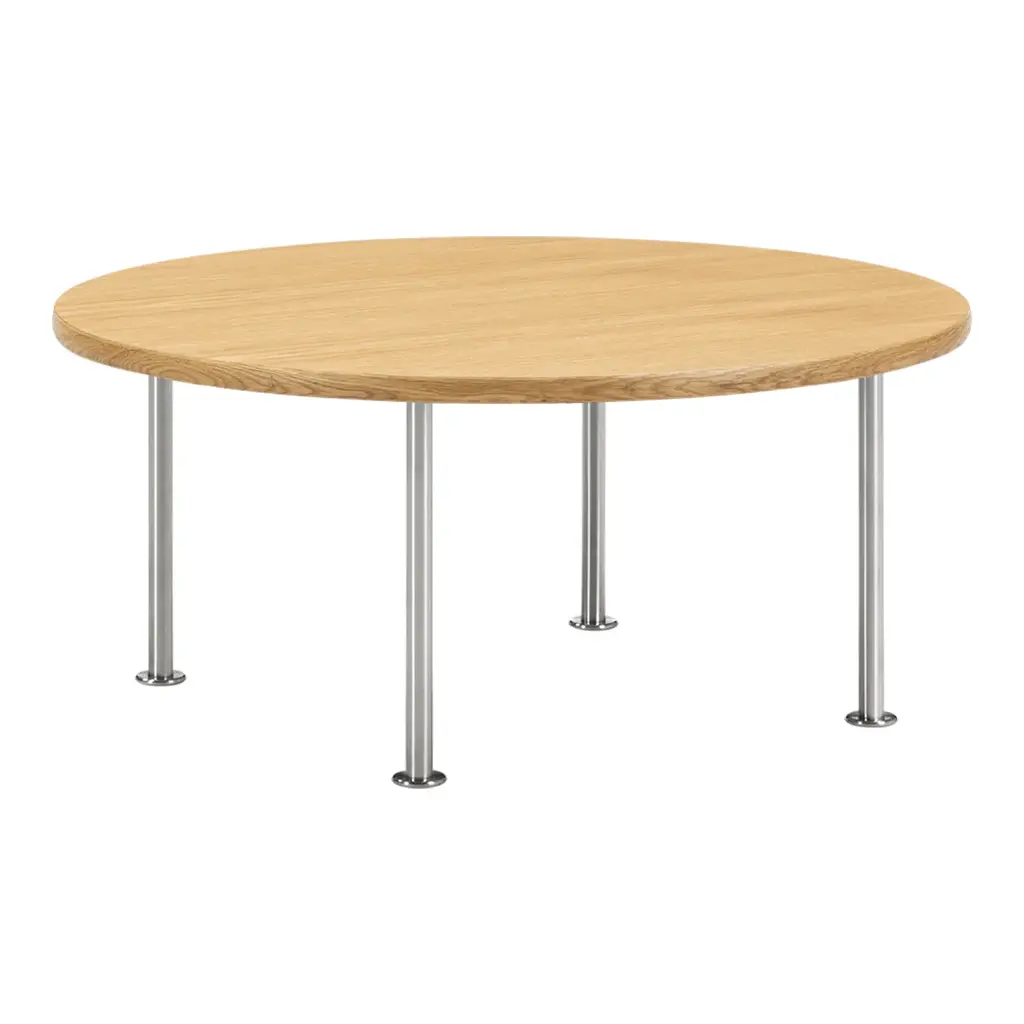 Designed in 1960, along with Ox Chair and Queen Chair, the Ox Table fits as a natural centrepiece. A classic Hans. J. Wegner piece of furniture in a simple, yet complex design with a self-supporting construction completed without any side rails resulting in a sleek and elegant profile. The table is available in two heights, and more tables can put together with overlapping table tops.