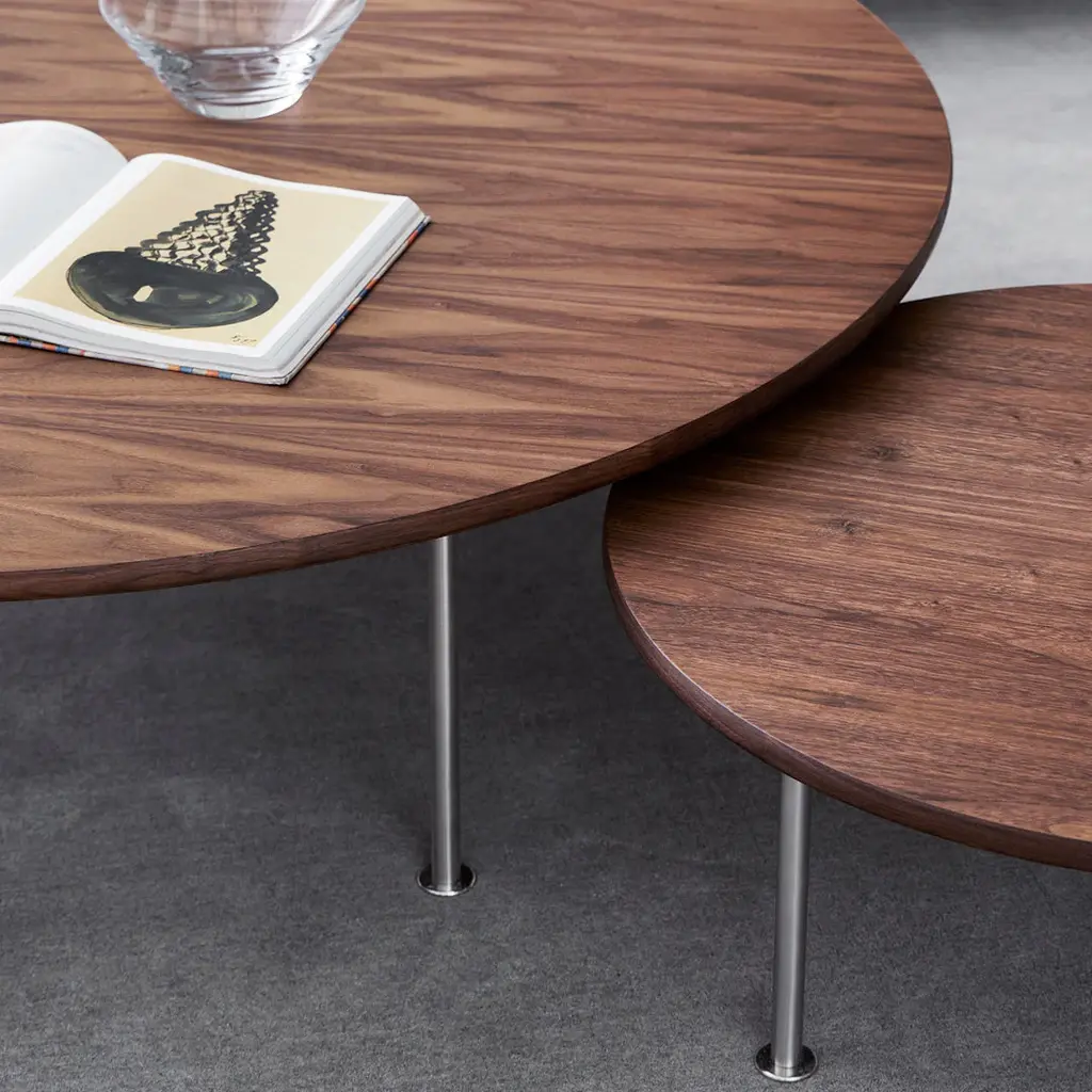 Designed in 1960, along with Ox Chair and Queen Chair, the Ox Table fits as a natural centrepiece. A classic Hans. J. Wegner piece of furniture in a simple, yet complex design with a self-supporting construction completed without any side rails resulting in a sleek and elegant profile. The table is available in two heights, and more tables can put together with overlapping table tops.