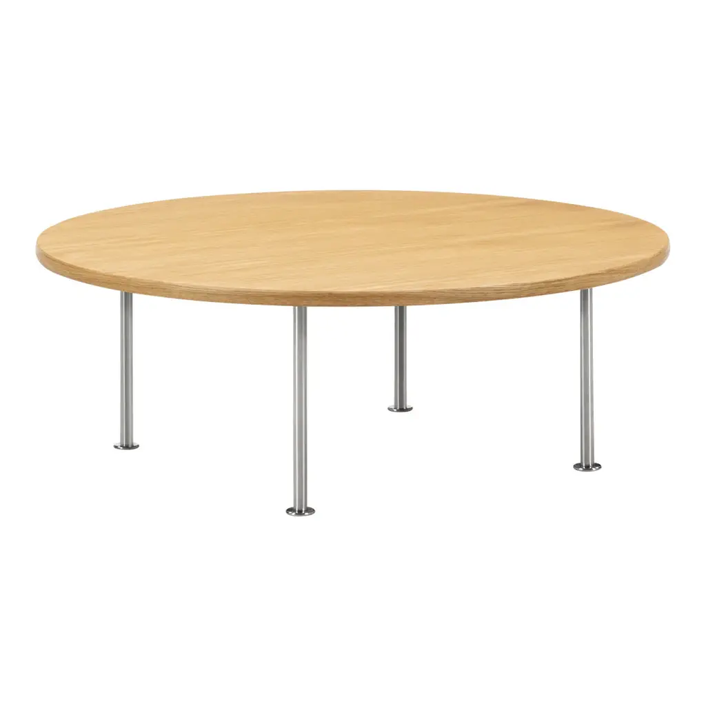 Designed in 1960, along with Ox Chair and Queen Chair, the Ox Table fits as a natural centrepiece. A classic Hans. J. Wegner piece of furniture in a simple, yet complex design with a self-supporting construction completed without any side rails resulting in a sleek and elegant profile. The table is available in two heights, and more tables can put together with overlapping table tops.