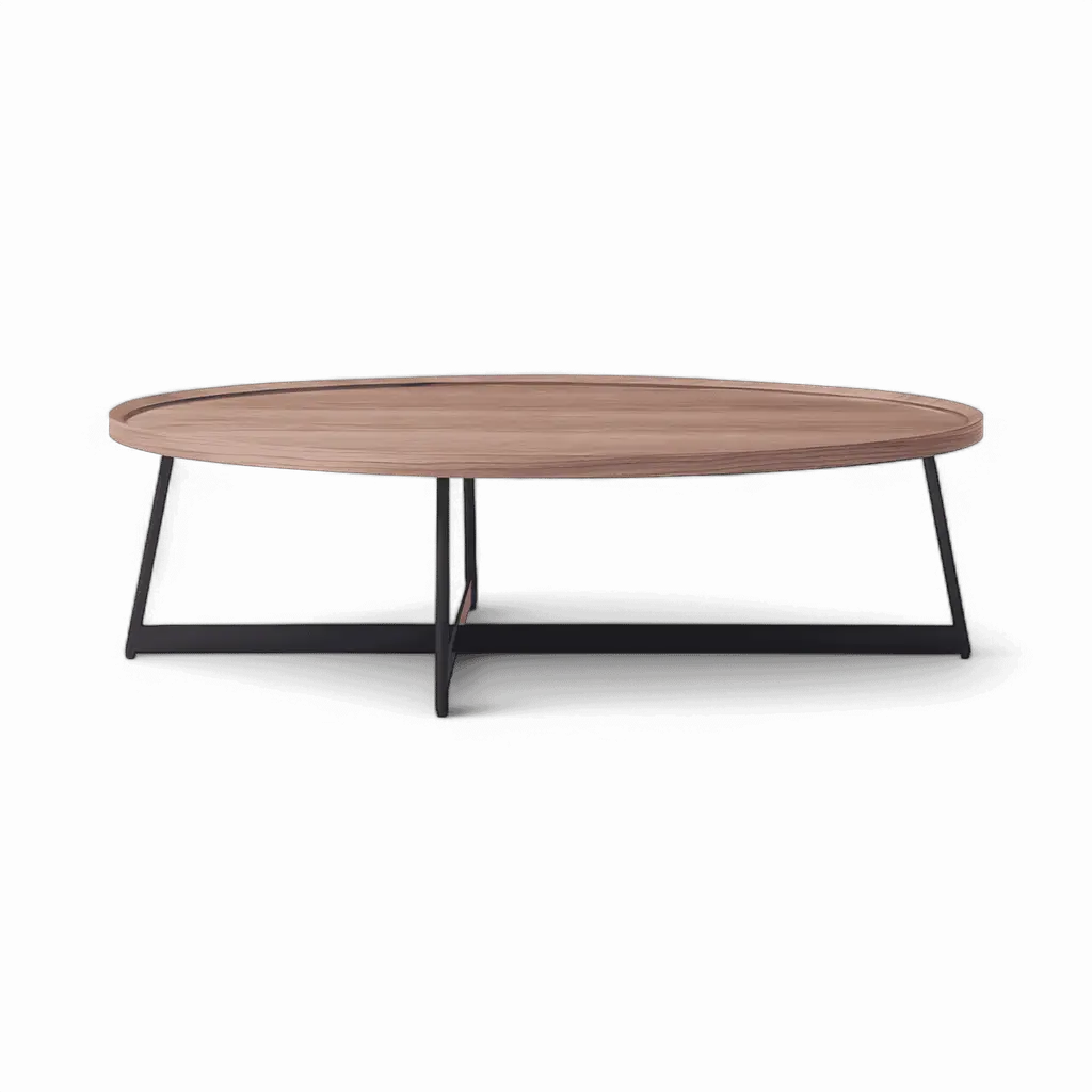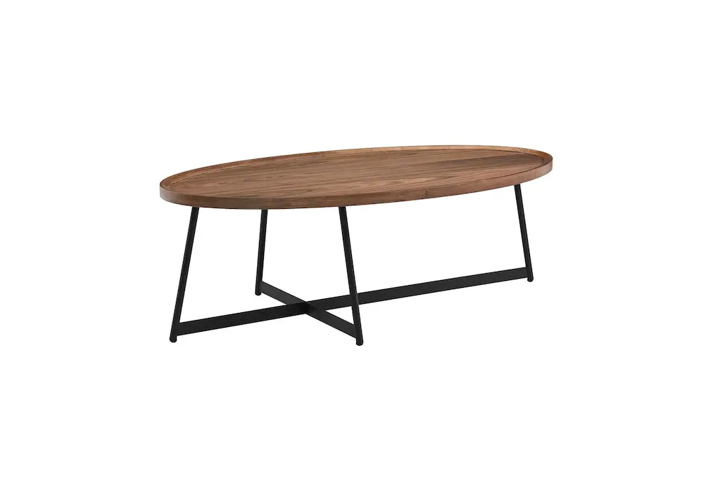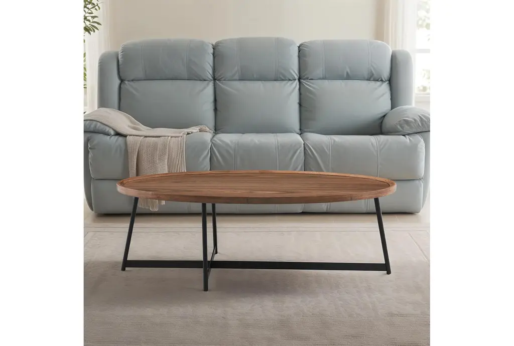 The Weldon Brown Walnut Wood Oval Coffee Table is a stylish and functional addition to any living room. Featuring a mid-century modern design, it seamlessly blends with various decor styles. The American Walnut veneer over MDF ensures durability and a rich finish.