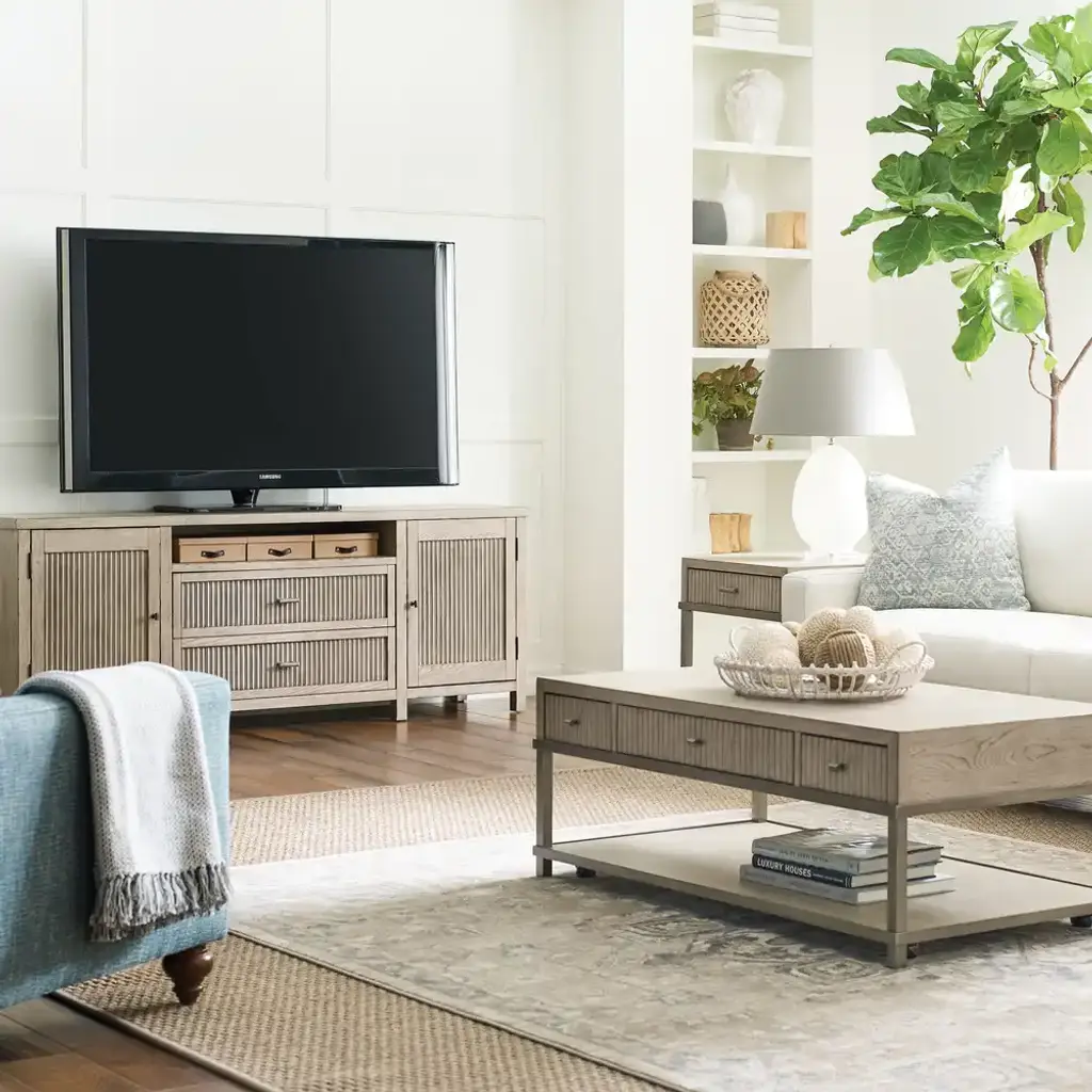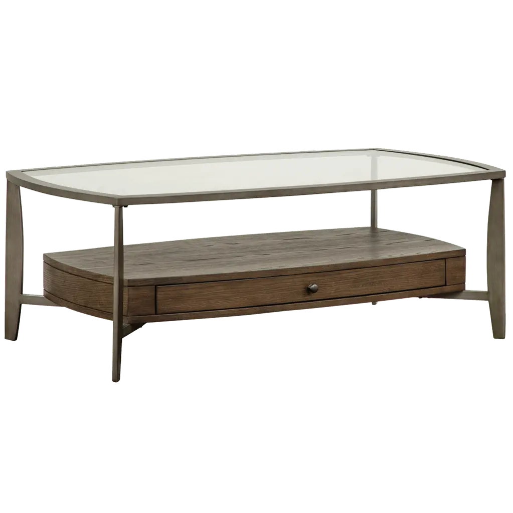 The Bailey Coffee Table from the West Fork collection combines rustic charm with modern functionality. Crafted from flat cut elm veneers, it showcases a rich wood grain that adds warmth to any space. A spacious drawer provides discreet storage, while the lower shelf offers additional room for display or organization. Designed for versatility, casters ensure effortless mobility, making it easy to adapt to different layouts. With its refined craftsmanship and practical features, this coffee table serves as a stylish and functional centerpiece for any living area.