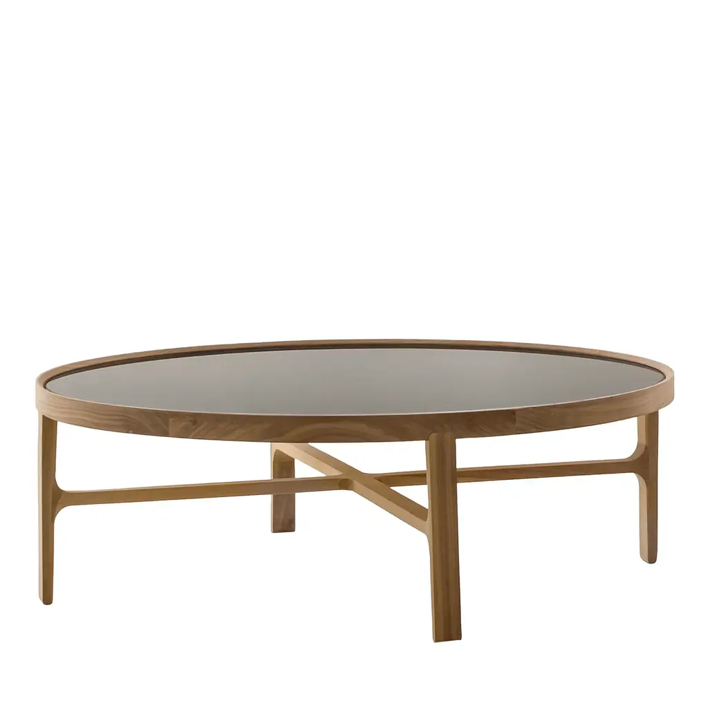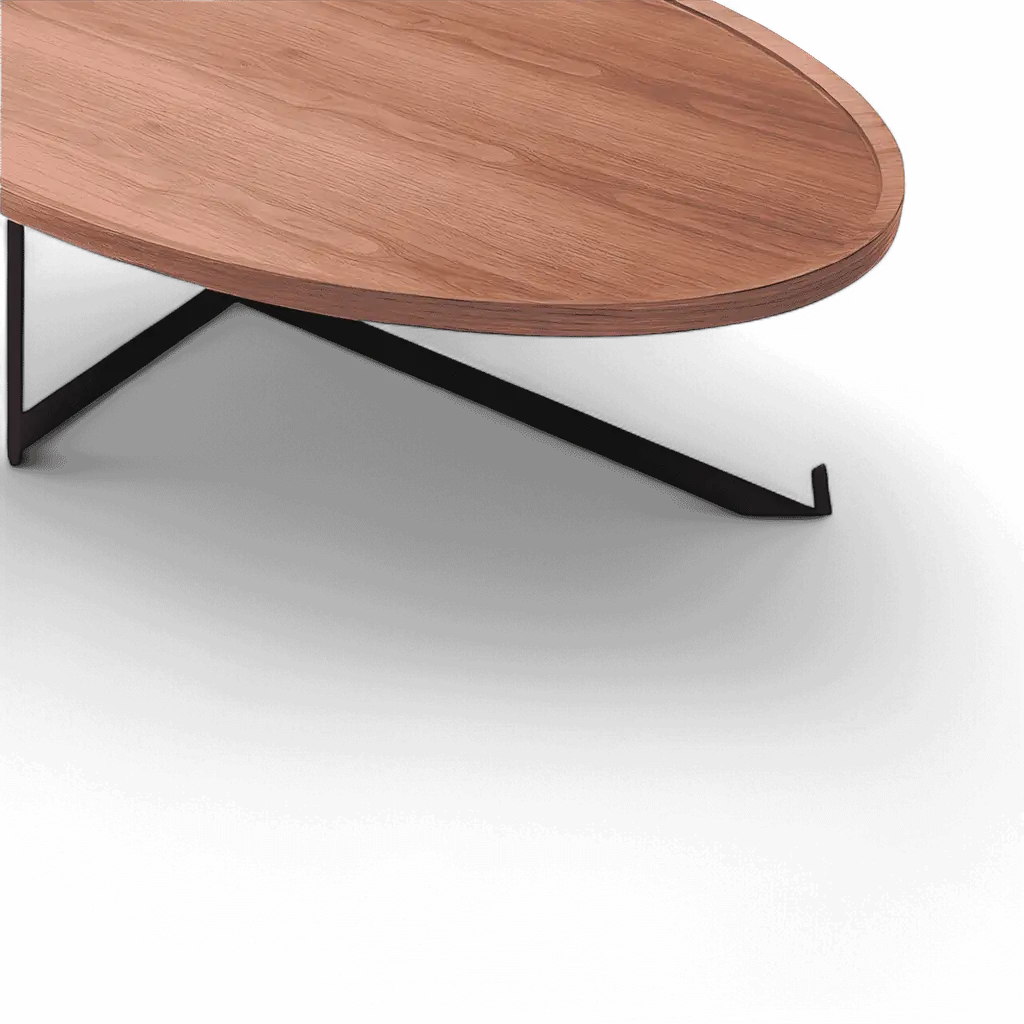 Don’t be fooled – the Wyatt Coffee table may be neat and minimalist, but it packs more distinction than similar, more contemporary pieces. An oval, compact shape with a beveled edge; plus, a criss-cross design for two black metal legs gives this accent piece a touch of retro-glam. We applied an intense coating walnut veneer to protect its shape and add dimension. MDF Top Covered with Walnut Veneer, Metal Frame in Iron Lacquered in Matt Black Color