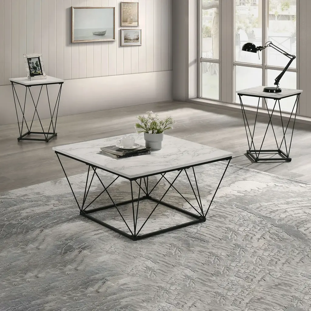 Whetstone 31.5" 3-Piece Coffee Table Set With Angular & Geometric Metal Base - Black