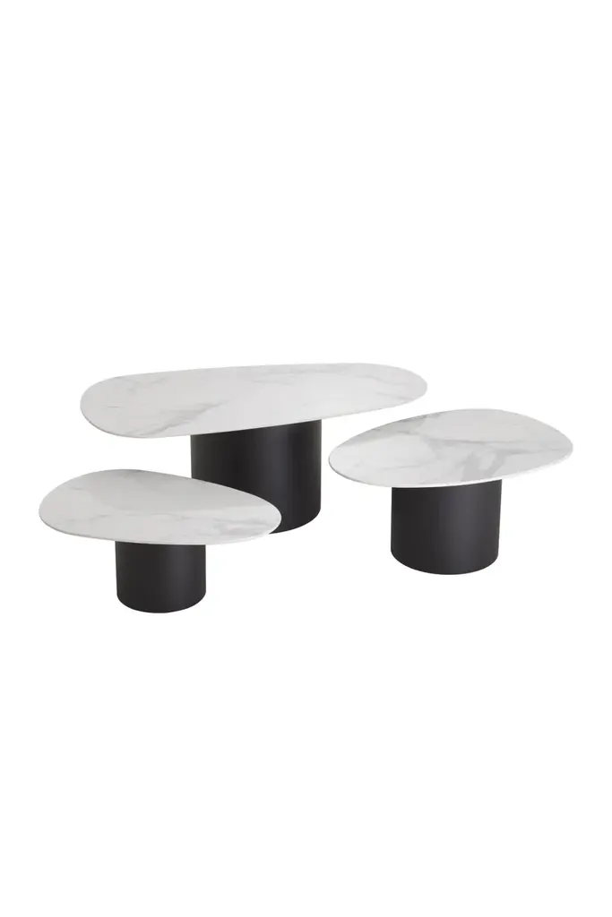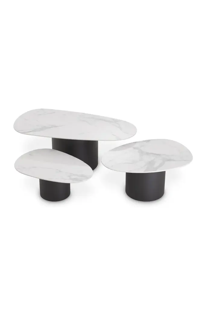 White Ceramic Marble Coffee Table Set (3) | Eichholtz Zane