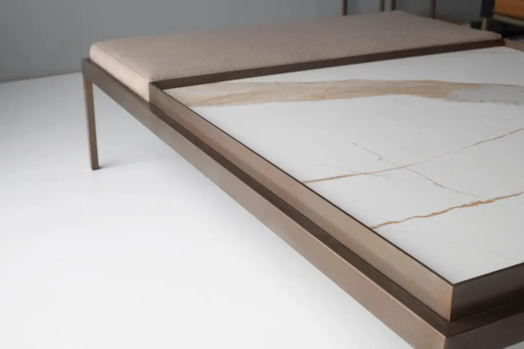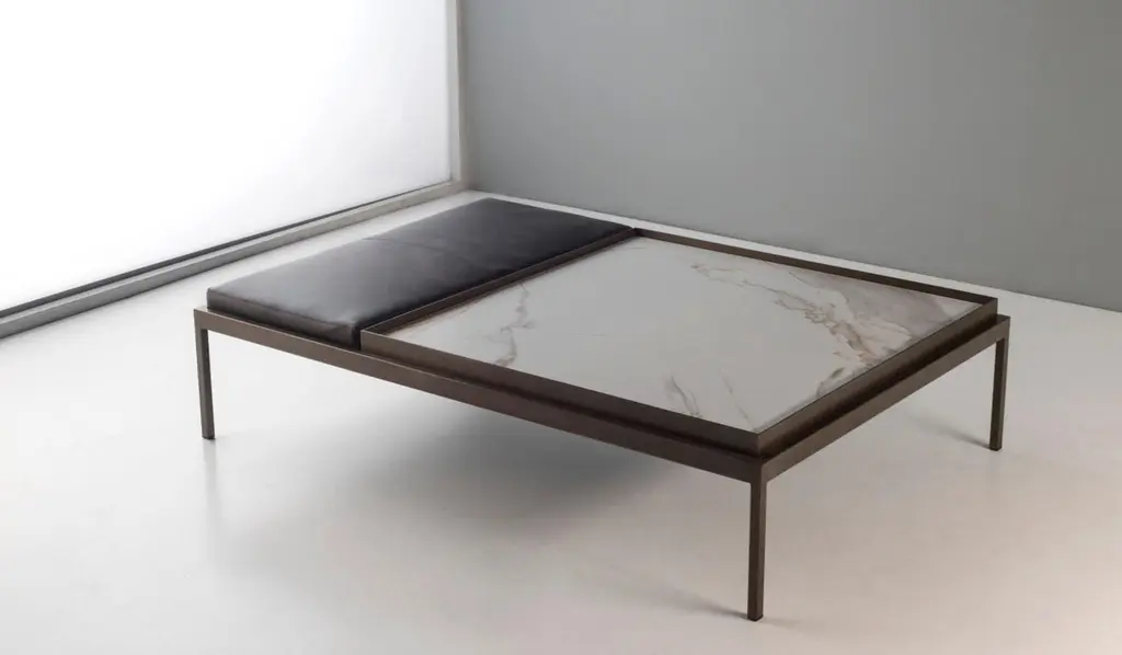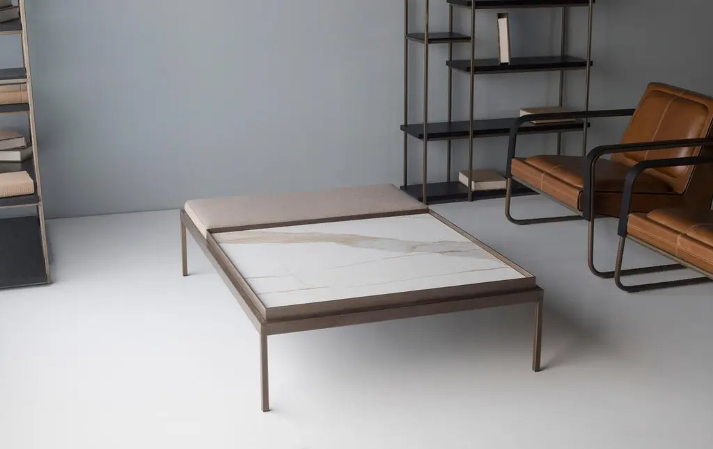 White Coffee Table by Doimo BrasilDimensions: W 140 x D 95 x H 34 cm Materials: Base: Aged steel, Seat: Natural leather, Top: Ceramic.With the intention of providing good taste and personality, Doimo deciphers trends and follows the evolution of man and his space. To this end, it translates into its products: simplicity, creativity and technology, creating a scenario that adapts to all lifestyles.Founded in 1994, it is currently an Italian-Brazilian joint venture located in Ribeirão das Neves, Minas Gerais, Brazil.