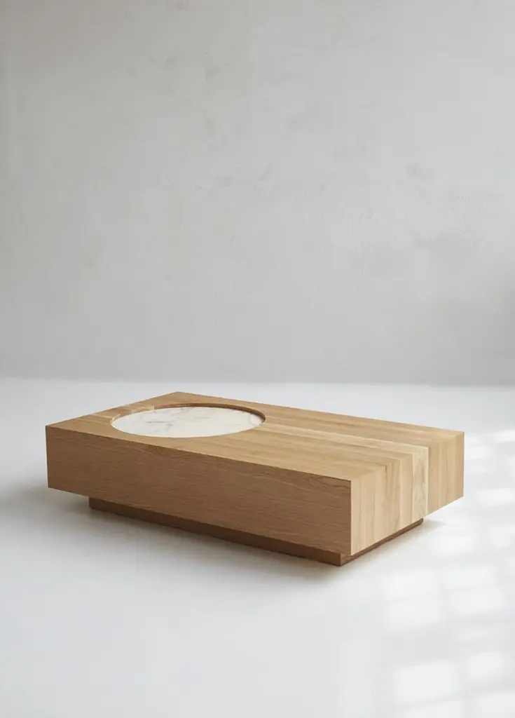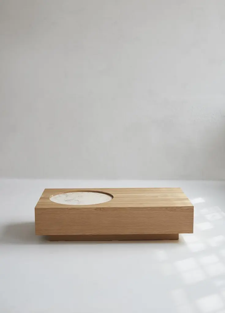 White Oak Veneer Coffee Table With Marble Insert 46"l By Mary Ratcliffe Studio