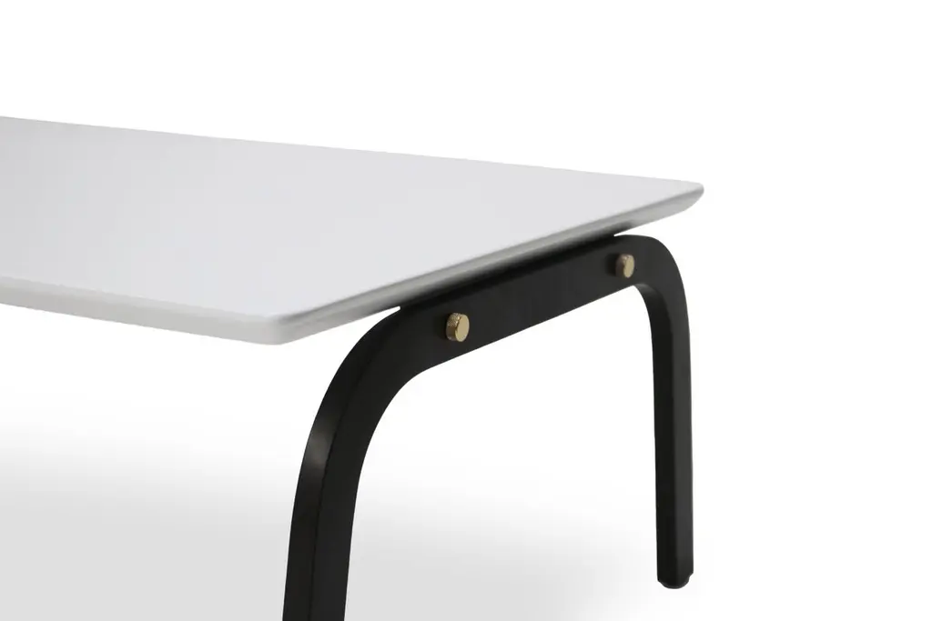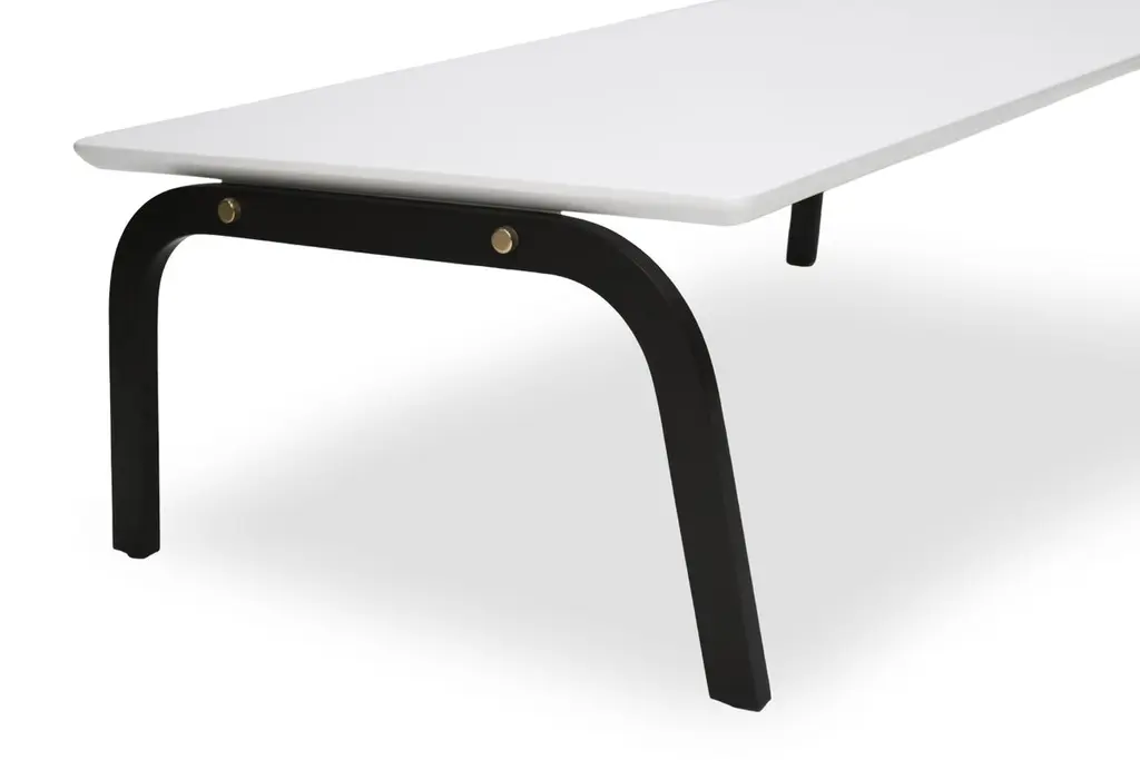 White Ribbon Outdoor Coffee Table With Legs Lacquered In Brown