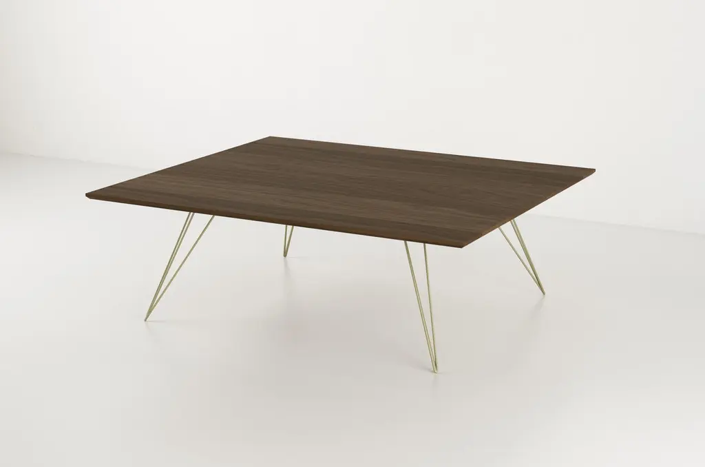 Williams Hairpin Coffee Square Table Walnut Brassy Gold