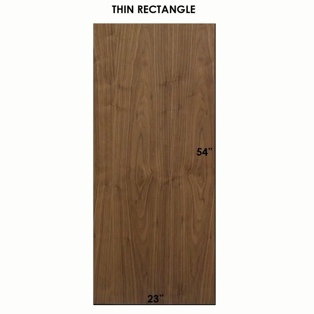 A thin, elegant and light table that can be customized to any shape, size and color desired. This handcrafted item perfectly blends industrial hairpin legs with a beveled wooden top. The irregular beauty of its natural wood combined with its simple elegant base creates a timeless, original design. This piece is offered in dinning and coffee heights as well as several shapes and sizes including large and small: rectangle, oval, square, and circle.
