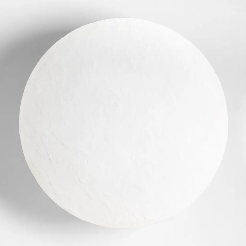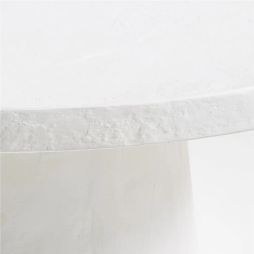 Willy distills the classic pedestal table down to its striking essentials in pure white. The coffee table's bold conical pedestal and simple round top are made from concrete material that creates a plaster-like appearance but is lighter in weight and more easily fabricated into this dramatically simple shape. The Willy pedestal coffee table is a Crate & Barrel exclusive.Part of the Leanne Ford furniture collection, exclusive to Crate and Barrel. A rising design star with a motto we can get behind"paint white, wear black"Ford created pieces that capture her cool, artful vibe.