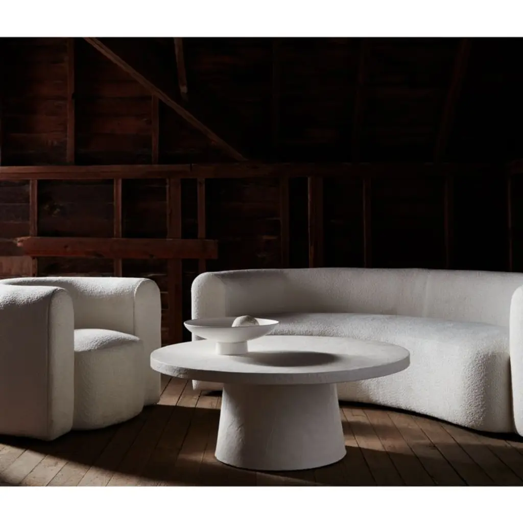 Willy White Concrete 44" Round Pedestal Coffee Table By Leanne Ford