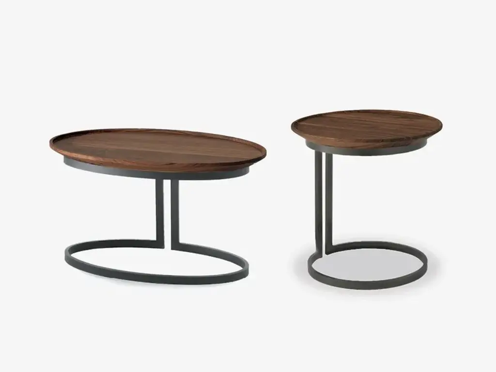 WING ROUND is a round coffee table with a solid wood slatted top and an iron structure. The removable top can also be used as a tray.Round or oval occasional table made with solid a wood top having glued boards, with structure in iron. The removable top can be used as a tray. Finish: base of oil / natural wax of vegetable origin with pine extracts.