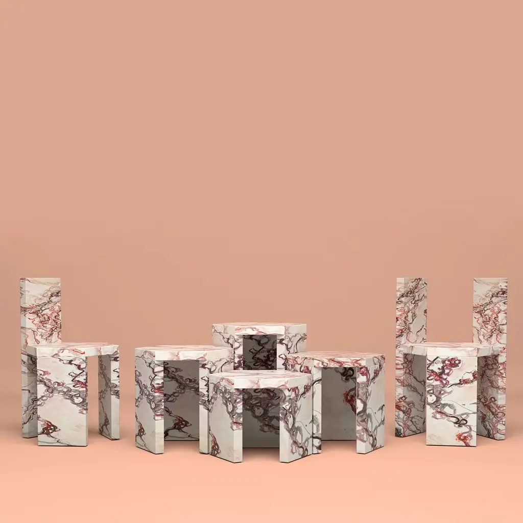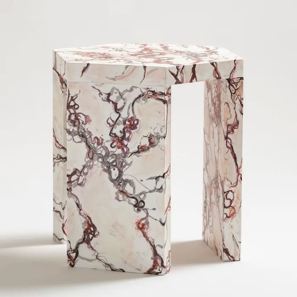 Inspired by fine Italian marble, this coffee table is meticulously crafted through the fusion of minimalist design principles and ancient artistic traditions. With 4 cm thick composite elements, this modular coffee table is both solid and functional, with a wooden frame coated with solvent-catalyzed paint, a polyurethane base, and an acrylic finish. The lightness and elegance of this coffee table, combined with its innovative design, result in an eye-catching art piece.