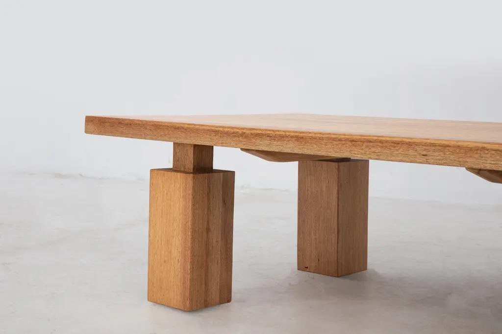 The Wolo Coffee Table features the beautiful grain and luminescent sheen of makata wood. Its design focuses on contrast as a guiding concept, featuring thick, columnar legs attached with thin connective tissue for a sculptural feel. The simple geometry emphasizes the quality of the solid, sustainable makata wood. Available in both a rectangular and round version.Solid makata woodHandcrafted using traditional joinery without nails or screwsWe make each piece by hand from solid wood, not veneer or engineered wood. Because every tree is different, you may see variations in color and pattern. Our tenna oil and water based finishes are resistant to spills and stains and will sustain for years with proper maintenance. Our pieces have been used in a variety of hospitality settings from hotels to retail spaces. Ships via white glove delivery 48"W x 28"D x 15"H 60"W x 28"D x 15"H 72"W x 34"D x 15"H 80"W x 34"D x 15"HSwatches are available upon request.