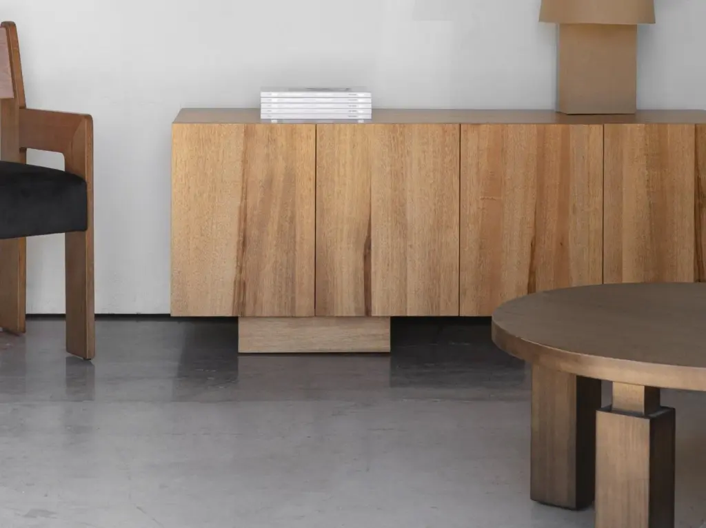 The Wolo Coffee Table features the beautiful grain and luminescent sheen of makata wood. Its design focuses on contrast as a guiding concept, featuring thick, columnar legs attached with thin connective tissue for a sculptural feel. The simple geometry emphasizes the quality of the solid, sustainable makata wood. Available in both a rectangular and round version.Dimensions: Ships to the continental US only.Unsure of which finish? Request free color swatches here.