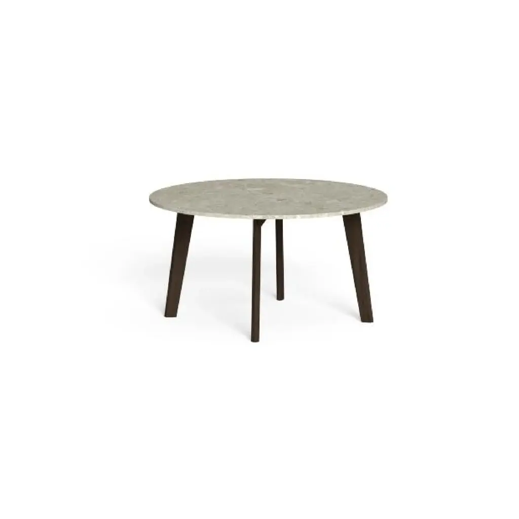 The round coffee table of the CleoSoft Wood collection is characterized by a wooden structure combined with a porcelain stoneware or wood top. Functional and in line with the style of the collection, it is perfect for decorating your outdoor space.