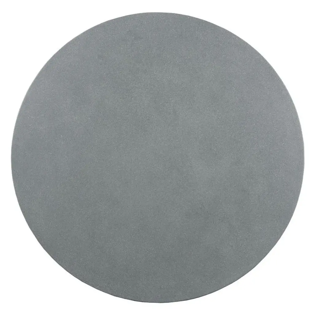 A wonderful low table for indoor and outdoor serving purposes. The table has graceful tapering cyma curved legs that intersect, elevating a round composite stone top.