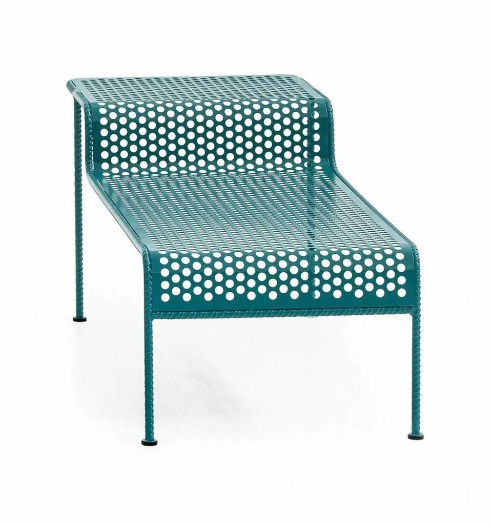 "Work is Over" is a coffee table, designed by Diesel Creative Team and manufactured by Moroso, made of a folded and perforated metal sheet in varnished steel available in copper or RAL 7003 moss gray finish.Indoor and outdoor use.Dimensions:D. 17.7", W. 43.3", H. 16.5" - h. 11.8"Moroso, with Diesel, has created a collection of products with a relaxed and comfortable mood, taking its inspiration from an informal lifestyle concept and targeting consumers who like simple shapes yet at the same time seek a “modern” style made up of high quality combined with a distinctive design of pure lines.“We worked with the Diesel creative team to develop an interesting and alternative collection idea which was to represent two different yet coexisting aspects of certain contemporary trends: one which is darker in tone, inspired by the underground world and with a more aggressive and enigmatic aesthetic, and the other lighter, inspired by nature and a visual radiance, with soft and welcoming shapes”, explained Patrizia Moroso who always follows all the phases of every design project personally.