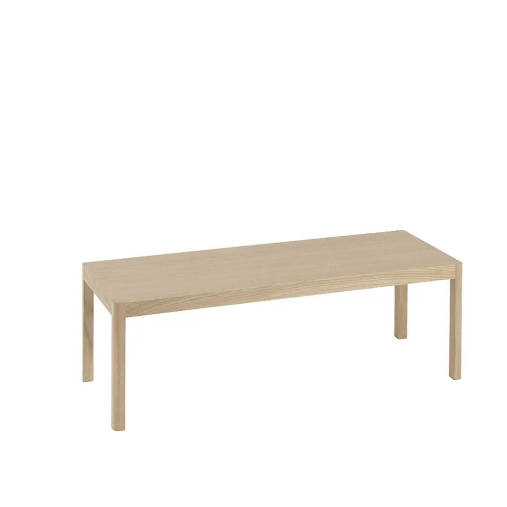 Muuto's Workshop coffee table continues the story of the wooden chair collection designed by Cecilie Manz. The coffee table combines traditional Scandinavian craftsmanship and modern design in an inviting manner; the sturdy solid oak frame has been finished with rounded edges and legs. The organic appearance makes Workshop a perfect addition to various kinds of living rooms, and its simple and robust design also serves as a side table in other rooms of the house. In 2020 Muuto changed the tables’ finish to a more environmentally-friendly, water-based lacquer.