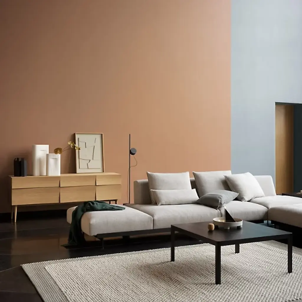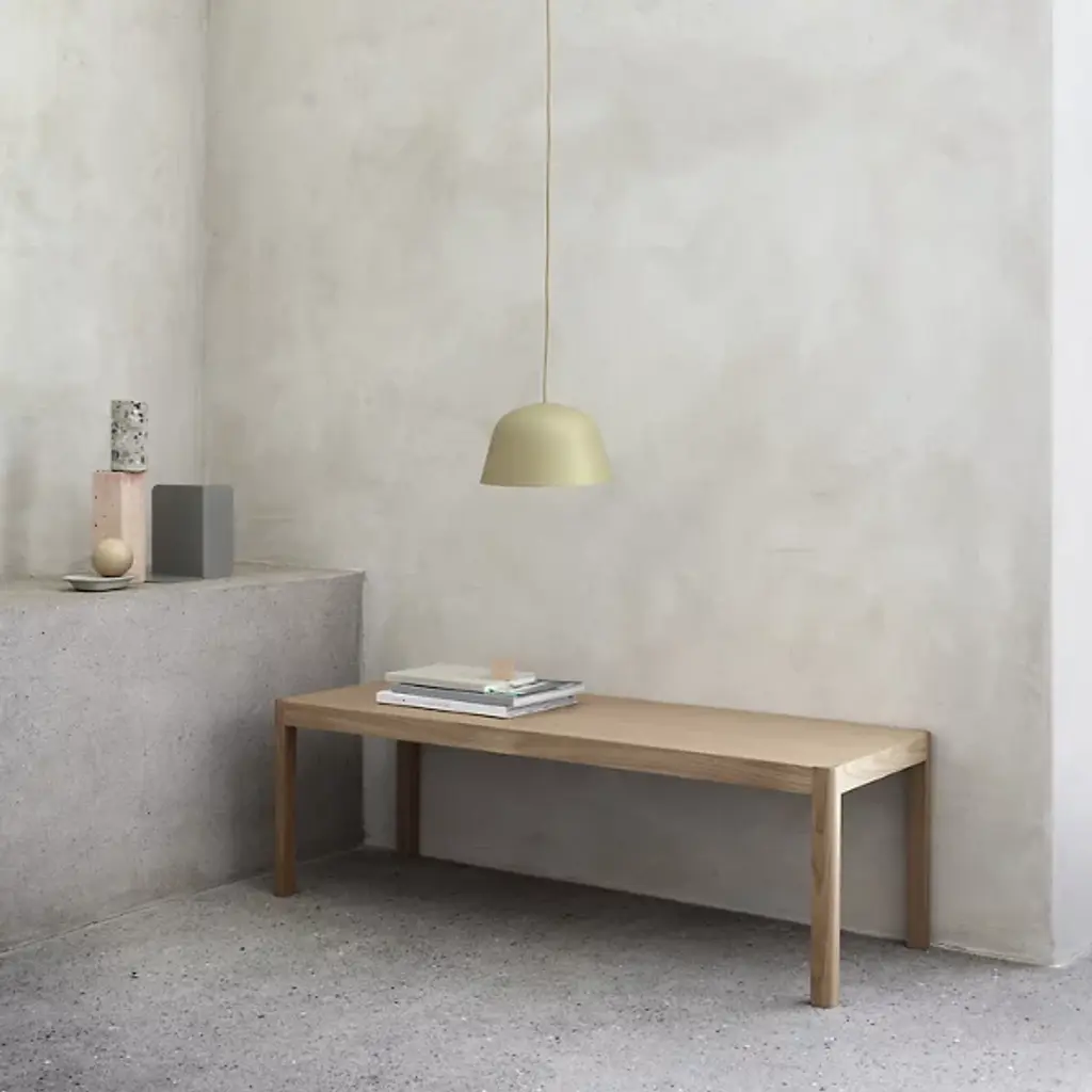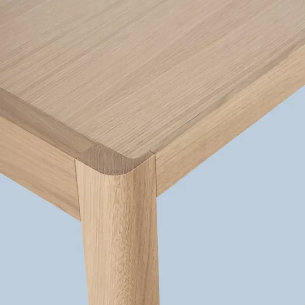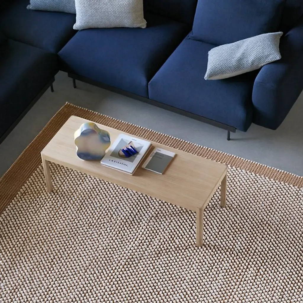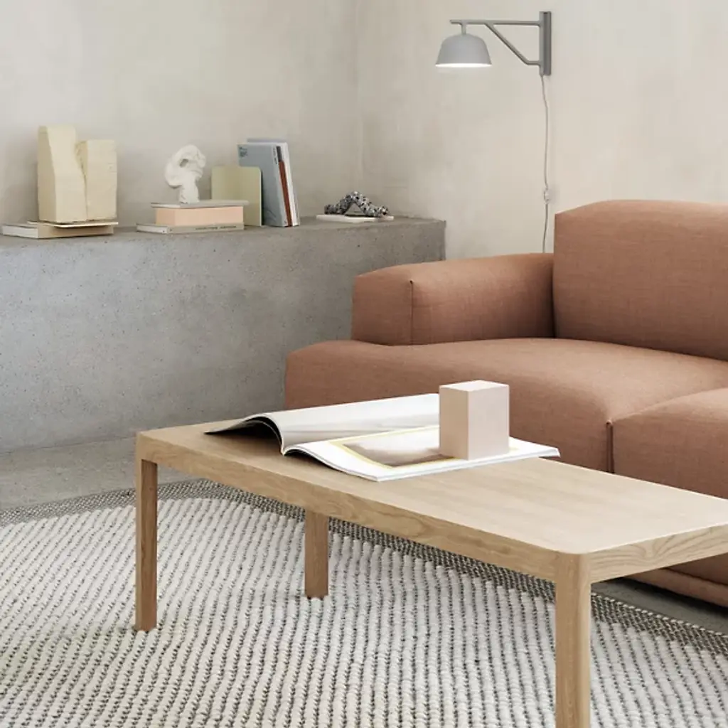 Add sleek Scandi simplicity to living spaces with the airy and elegant lines of the Workshop Coffee Table from Muuto. Its rectangular frame is balanced atop four robust and round-cornered solid wood legs, intricately crafted for a traditional character. It seats an oak veneer top almost seamlessly inside the frame, leveraging the woodgrain texture for natural appeal. The broad tabletop offers an expansive surface ideal for both storage and display while keeping the table’s character simple but distinctive.
