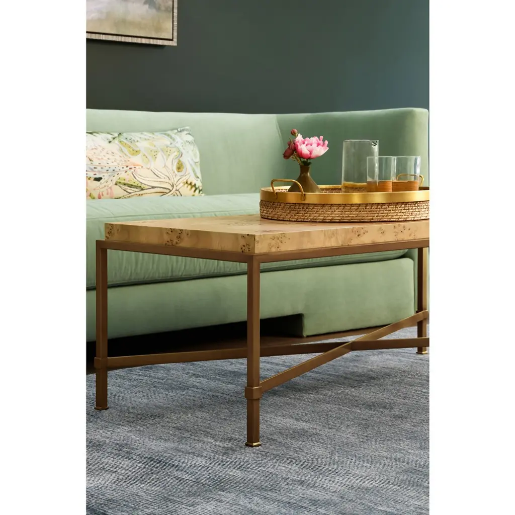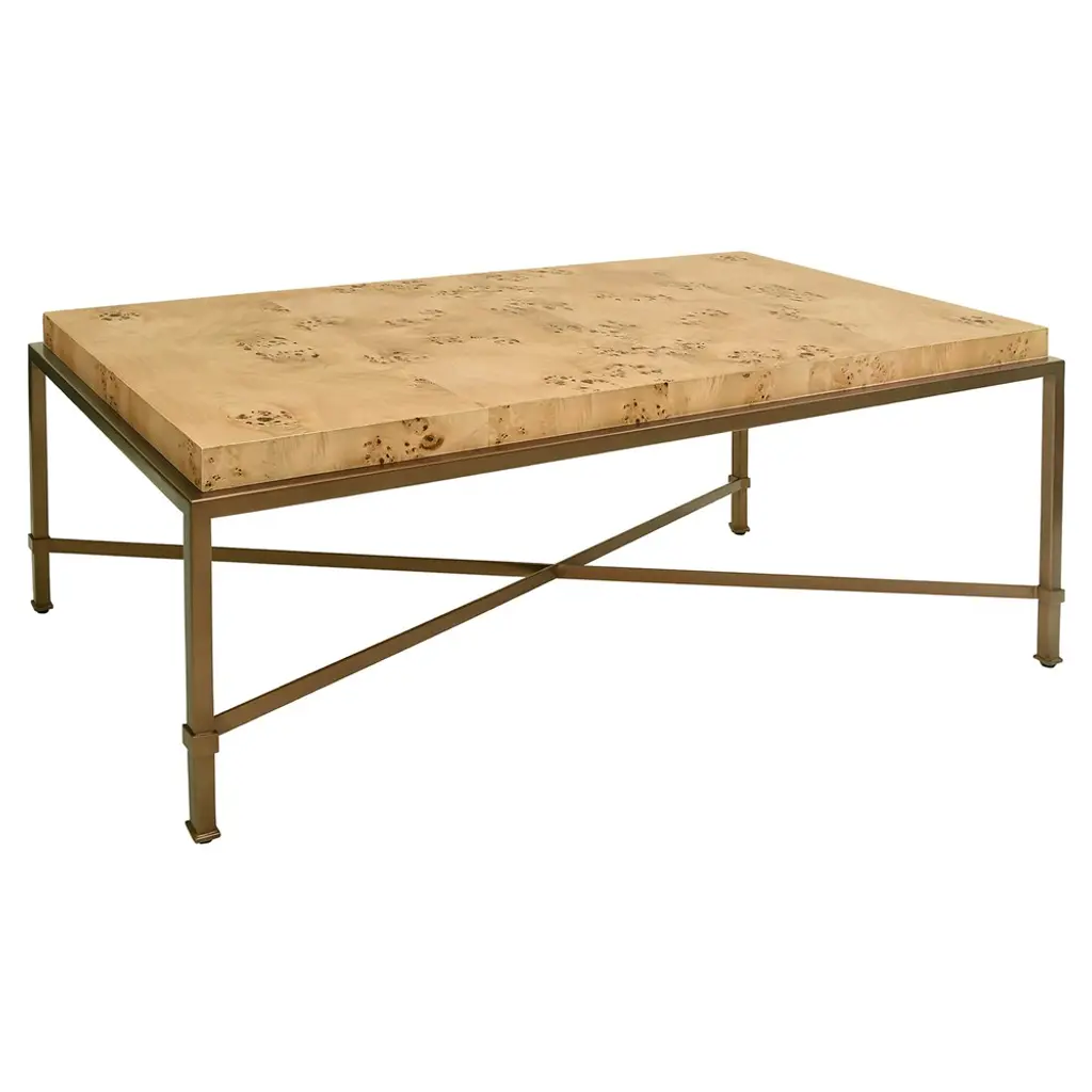 Worlds Away Hardwick Modern Classic Brown Burl Wood Rectangular Coffee Table