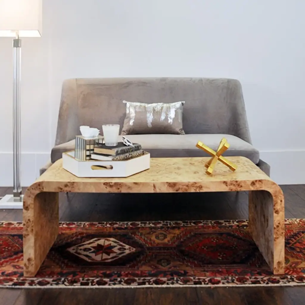 The Newbury waterfall coffee table by Worlds Away table offers a dazzling presence to a living room. Sleek and elegant, this chic piece expresses bold modernity with geometric style.