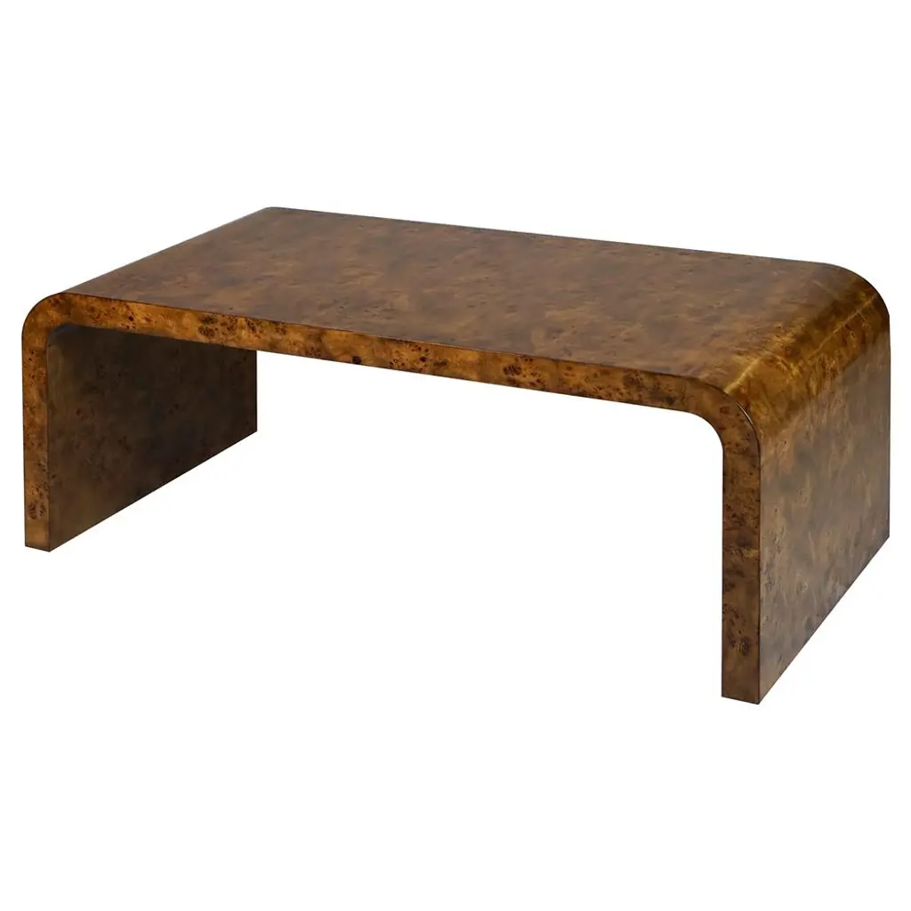 Worlds Away Newbury Modern Classic Dark Brown Burl Rectangular Coffee Table