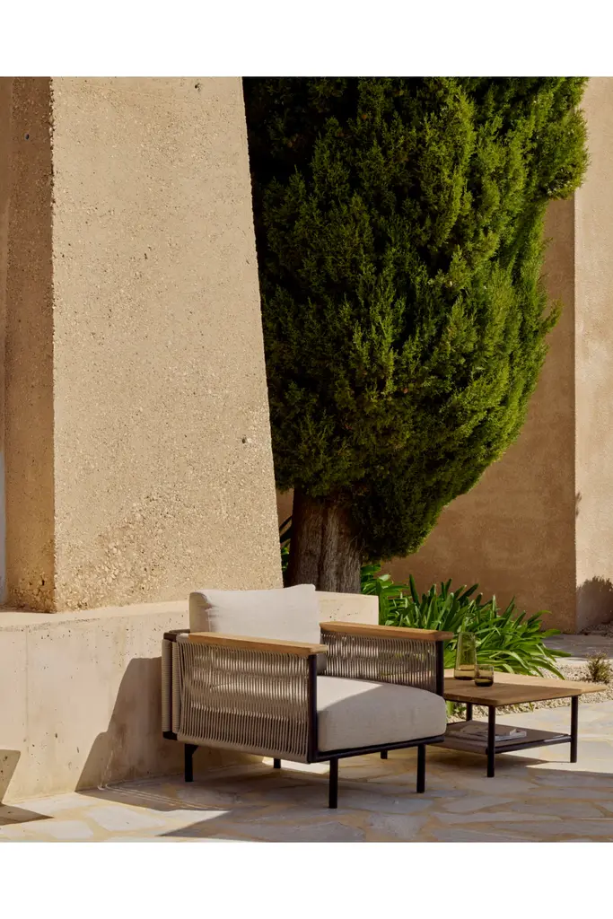 Inspired by the French word 'Corbeille,' meaning basket, the Corbey collection mirrors the charming beach hives found within the Wadden Islands, especially on the coastline of the picturesque island of Sylt. The Corbey coffee table with its intricately woven cord details, creates a blend of style and relaxation for your outdoor haven, pairing perfectly with the lounge items of the same name.