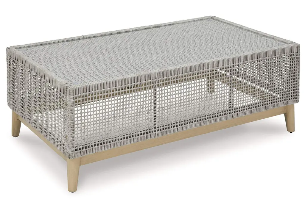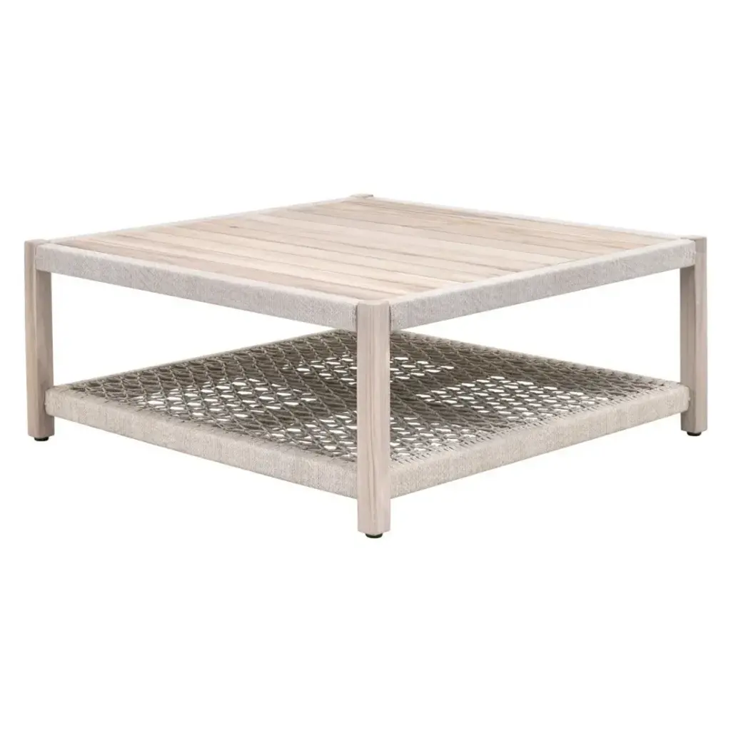 Wrap Outdoor Square Coffee Table Taupe & White Flat Rope, Gray Teak