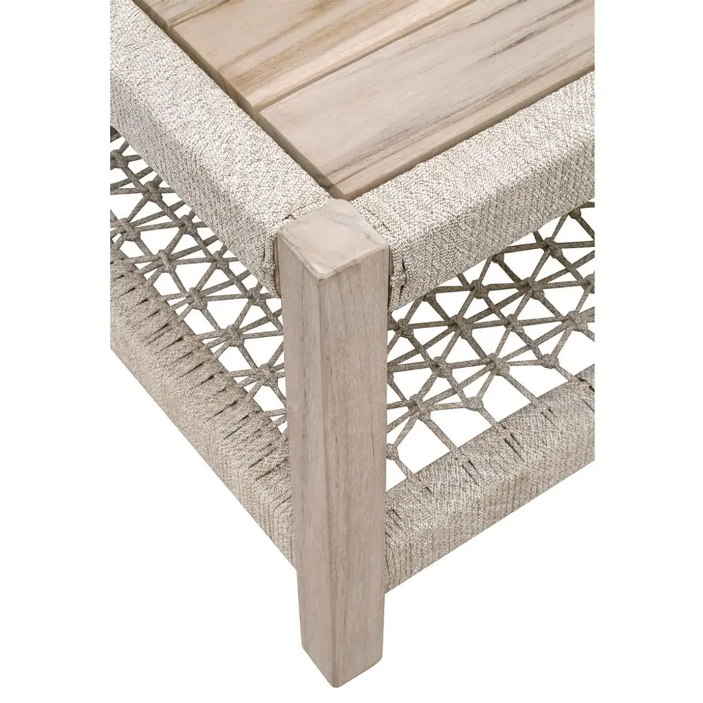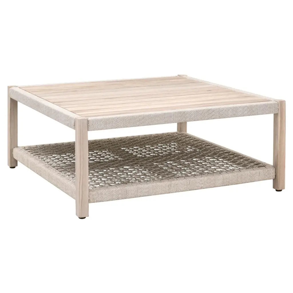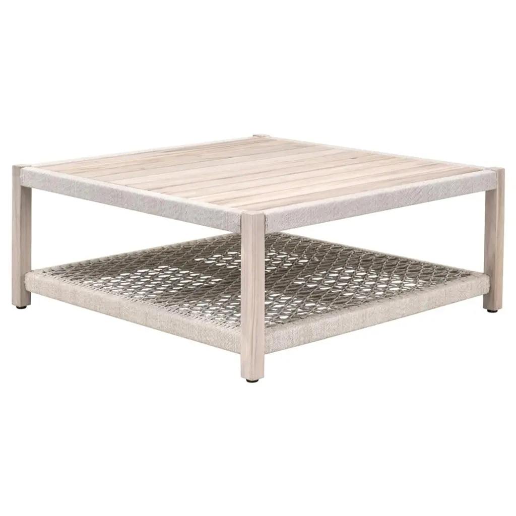 Wren Coastal Taupe Woven Rope Solid Teak 2 Tier Square Outdoor Coffee Table