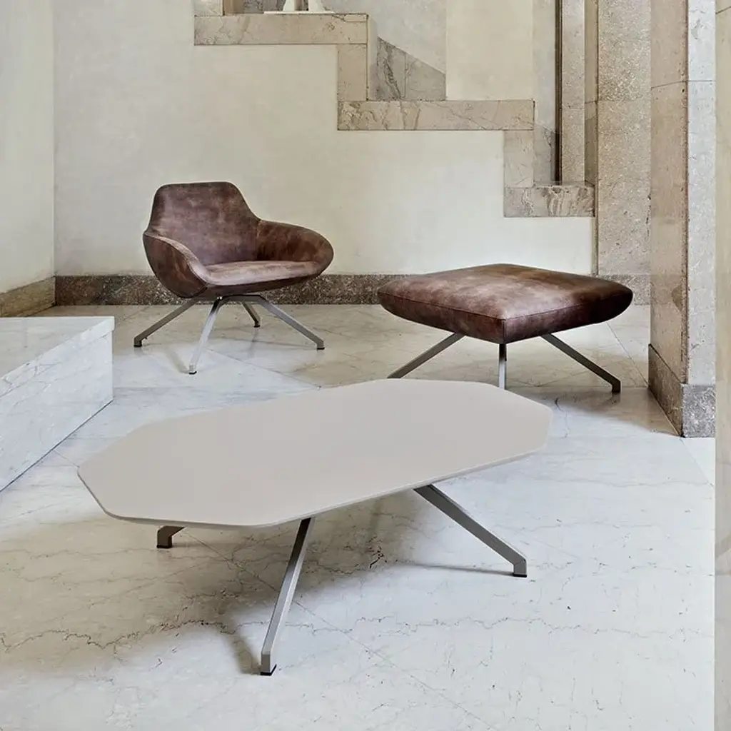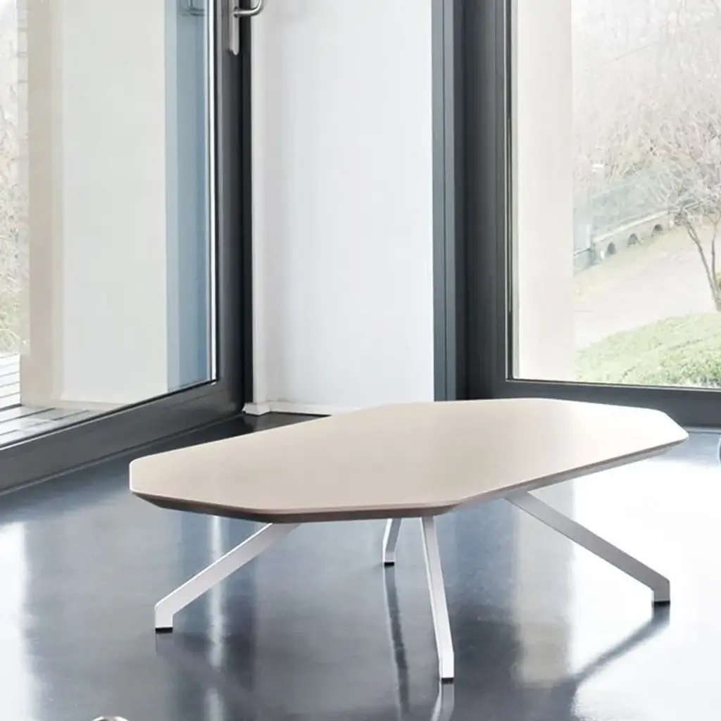 X-Table. Low table with ash wood structure and octagonal surface top in lacquered MDF or ash veneer.Materials and colours: ash structure (natural, walnut, gray or black). Octagonal top in coloured MDF (white, anthracite, sandy, hunter green) or stained ash (black stained ash or walnut).X-Table, a collection of coloured tables designed to fit any kind of space. In a public place, in a restaurant or in a private home, they are the perfect choice for creating a joyful and friendly atmosphere, always giving a touch of elegance which features the whole collection. The four legs of the table (in ash or steel) recreate the large and unmistakable ‘X’, the distinctive feature of X Collection designed by Mario Mazzer. They give stability to the structure and movement to the shapes. The octagonal plan is the feature that makes X Table the perfect and complementary part of the armchairs. It gives them a touch of incisiveness and character, for a unique result.