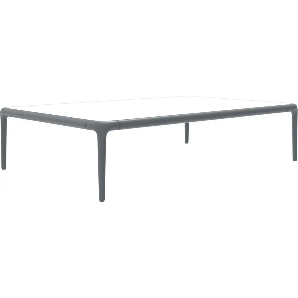 Xaloc grey coffee table 120 with glass top by Mowee.Dimensions: D120 x W80 x H28 cm.Materials: Aluminum, tinted tempered glass top.Also available in different aluminum colors and finishes (HPL Black Edge or Neolith). Xaloc synthesizes the lines of interior furniture to extrapolate to the exterior, creating an elegant and versatile collection that can coexist in both contexts. The textile of its elements also want to represent this concern to provide the exterior with the warmth of the interior furniture.The name Xaloc comes from the wind with the same name. A strong wind typical of the Mediterranean area. A wind capable of eroding the environment it meets. The shapes of the collection represent this wind-induced erosion that generates natural and harmonic forms.Möwee is part of the work, effort and commitment of Gaviota, a leading company in the outdoor sector. It was set up as an independent venture to broaden horizons in the outdoor furniture world, with its own distinctive character and way of doing things. Freshness, simplicity, quality and design are at the heart of its DNA.