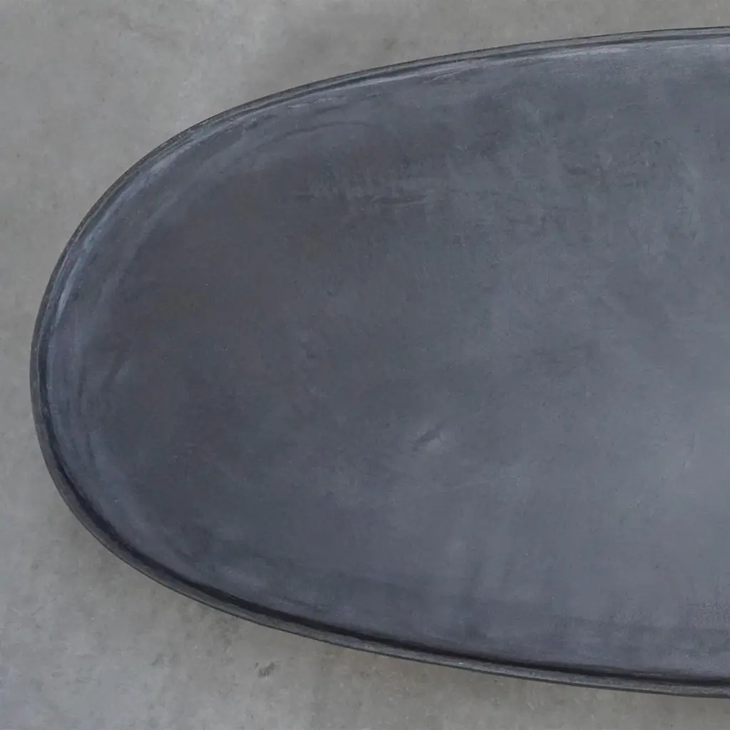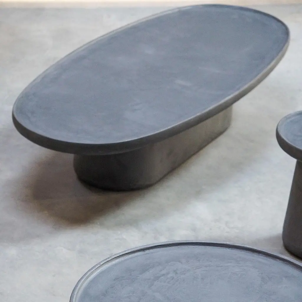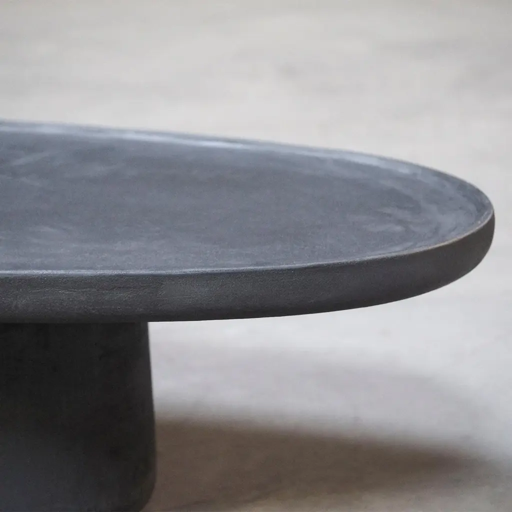 Coffee Table Yeshi Oval with all structure in hand-crafted limestone in dark anthracite grey finish.Also available on request in outdoor finish, including up-charge.