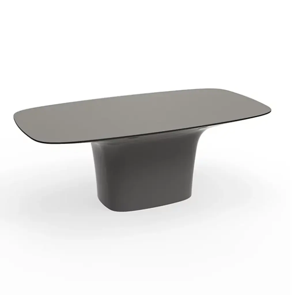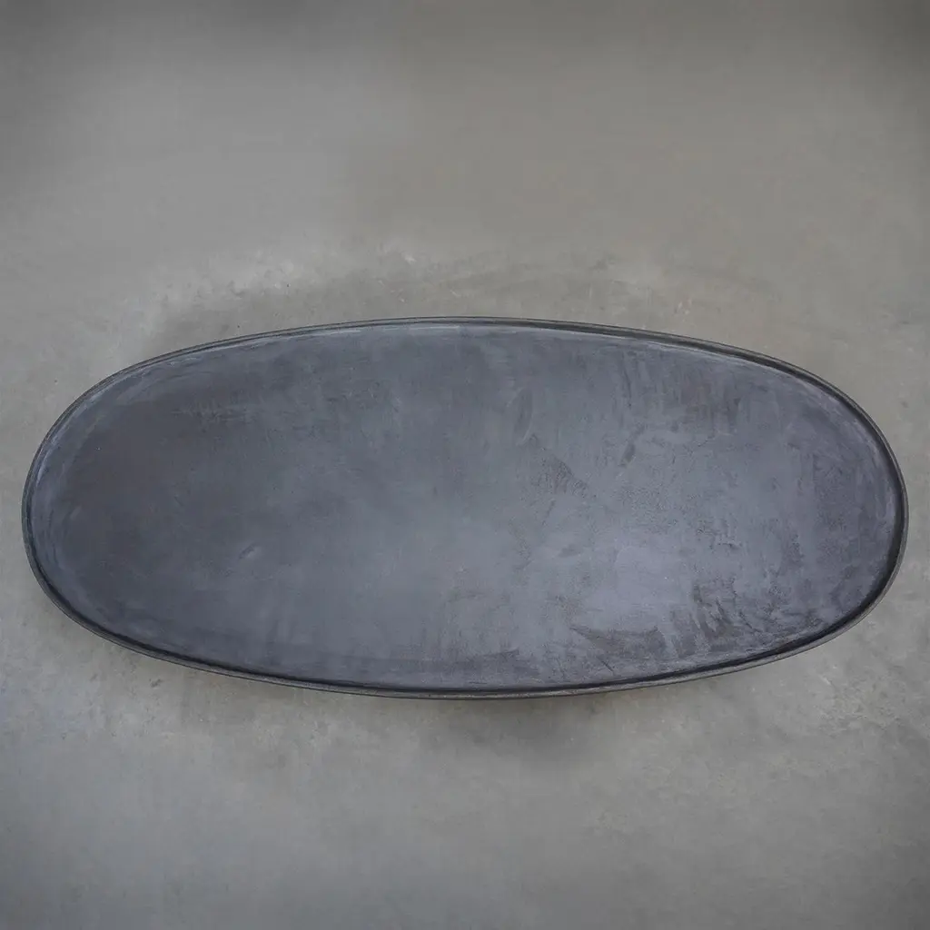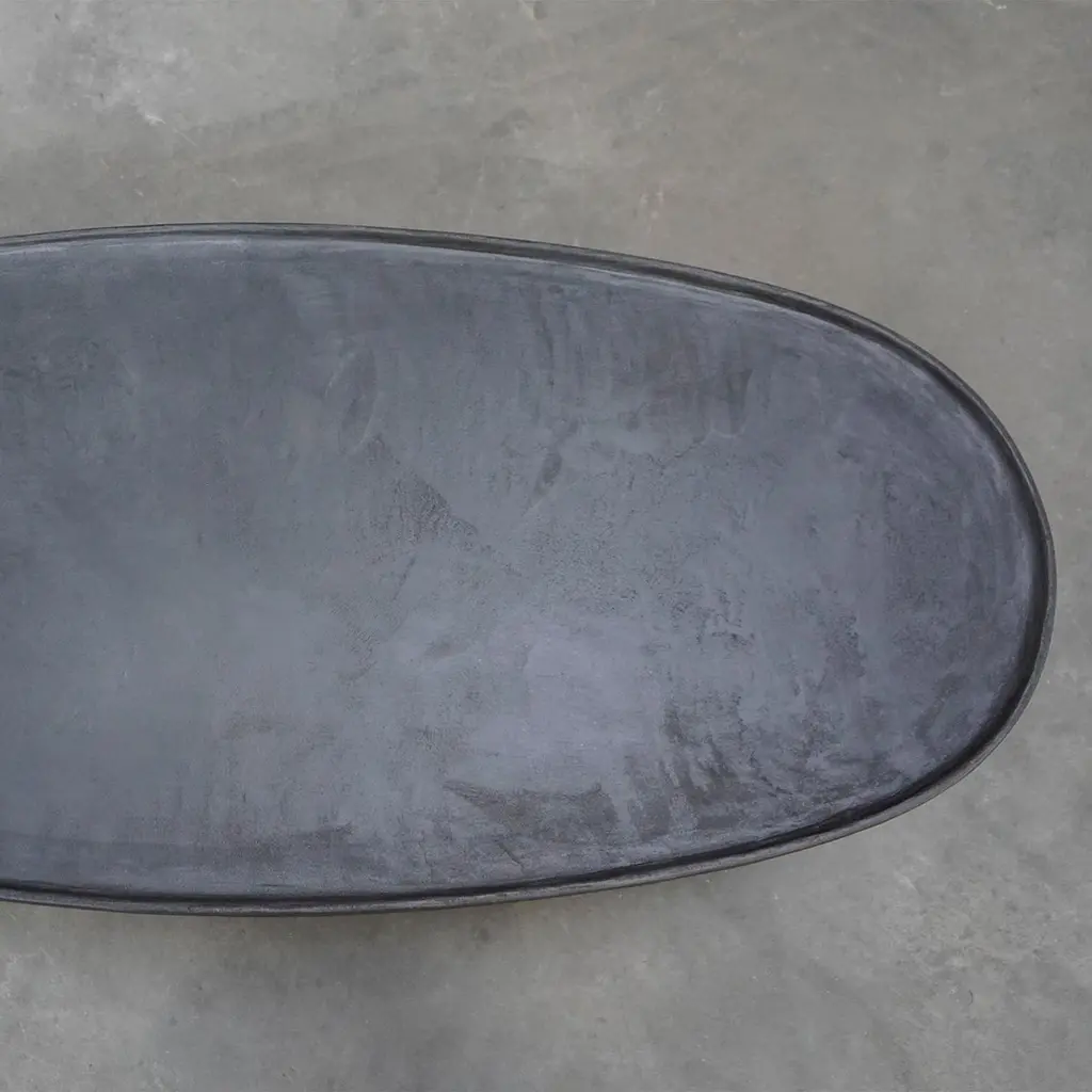 Coffee Table Yeshi Oval with all structure in hand-crafted limestone in dark anthracite grey finish.Also available on request in outdoor finish, including up-charge.