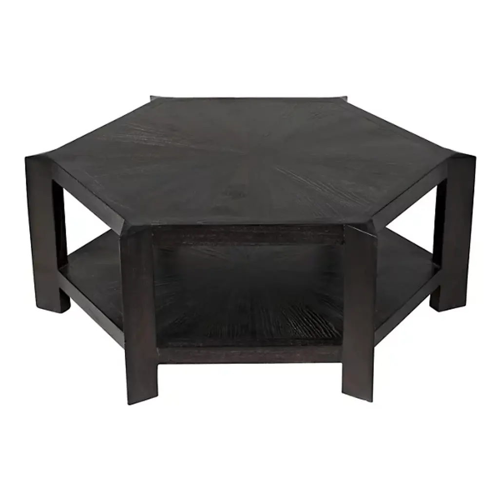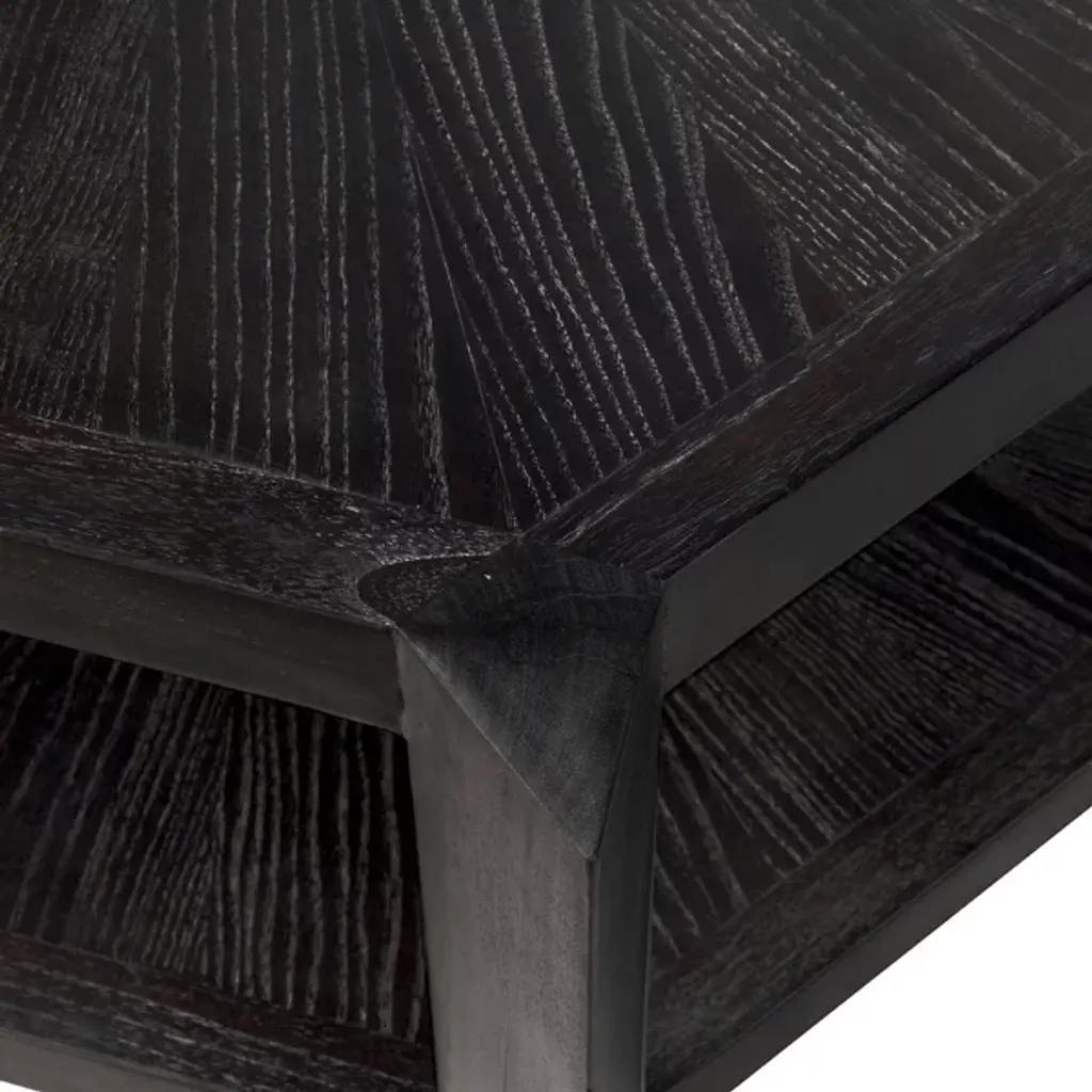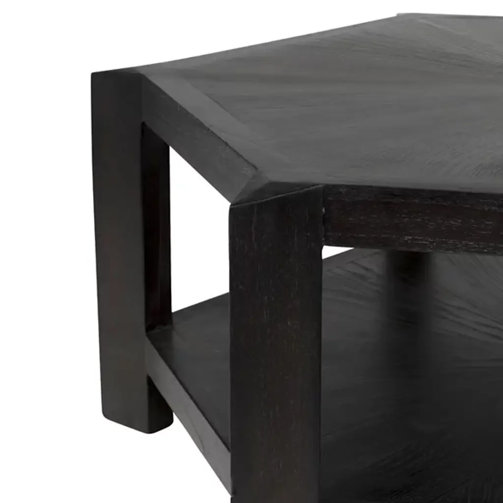 The Yuhuda Coffee Table from Noir presents a gorgeous geometric vibrancy to indoor living spaces. A dual-layered assembly of fine-grained Mindi wood, it ascends from a series of angled legs, transforming its surroundings with a lower storage shelf that coordinates with the tabletop. Each angled leg coordinates with the outward angles, adding welcome intricacy while coordinating well with the segmented, triangular slices of the tabletop. The solid wood contrasts well with the negative space of the table’s open interior, creating a memorable ensemble.